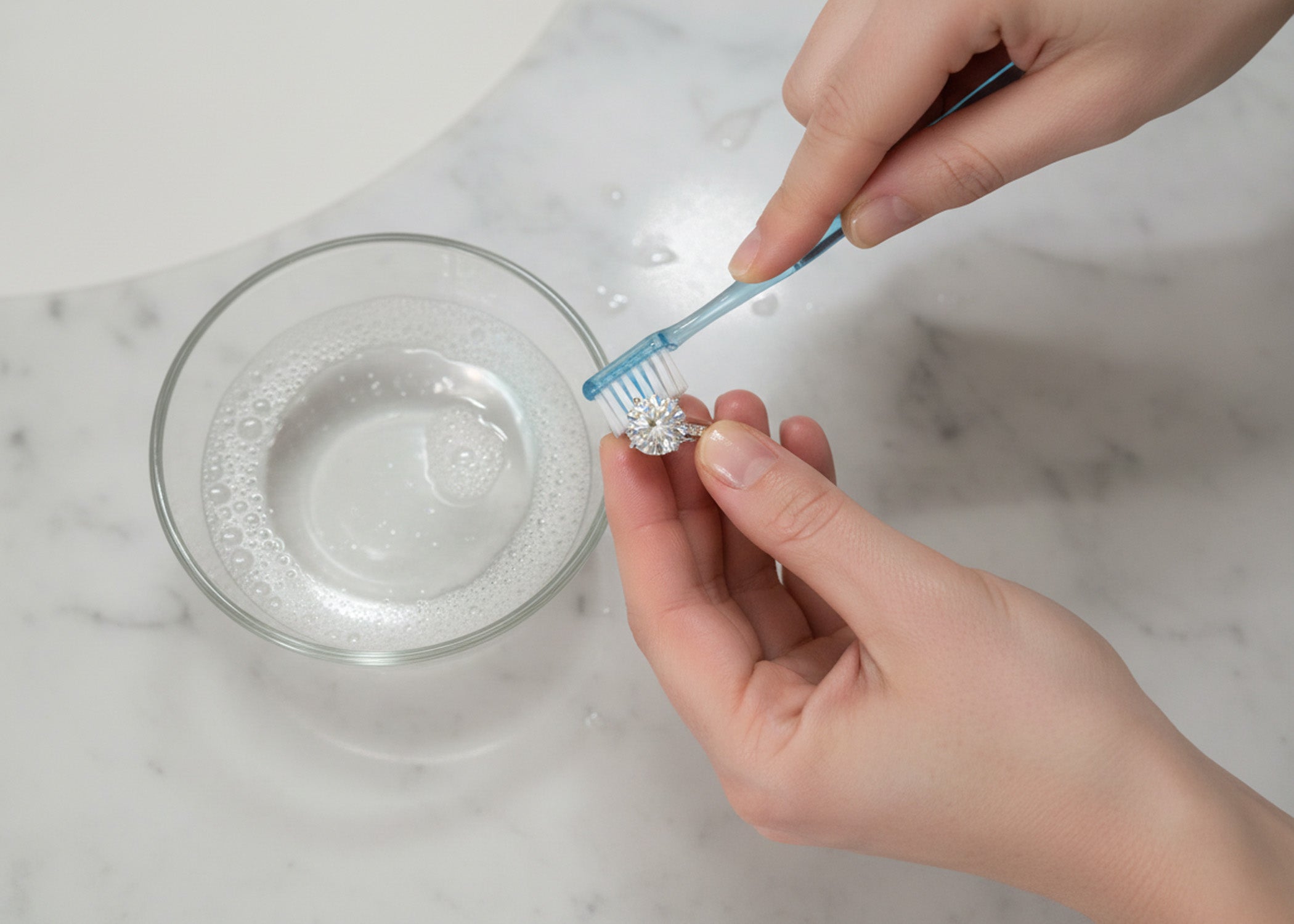 To prevent any scratch marks or buildup in your ring, there are a few ways you can take care of your jewelry at home.