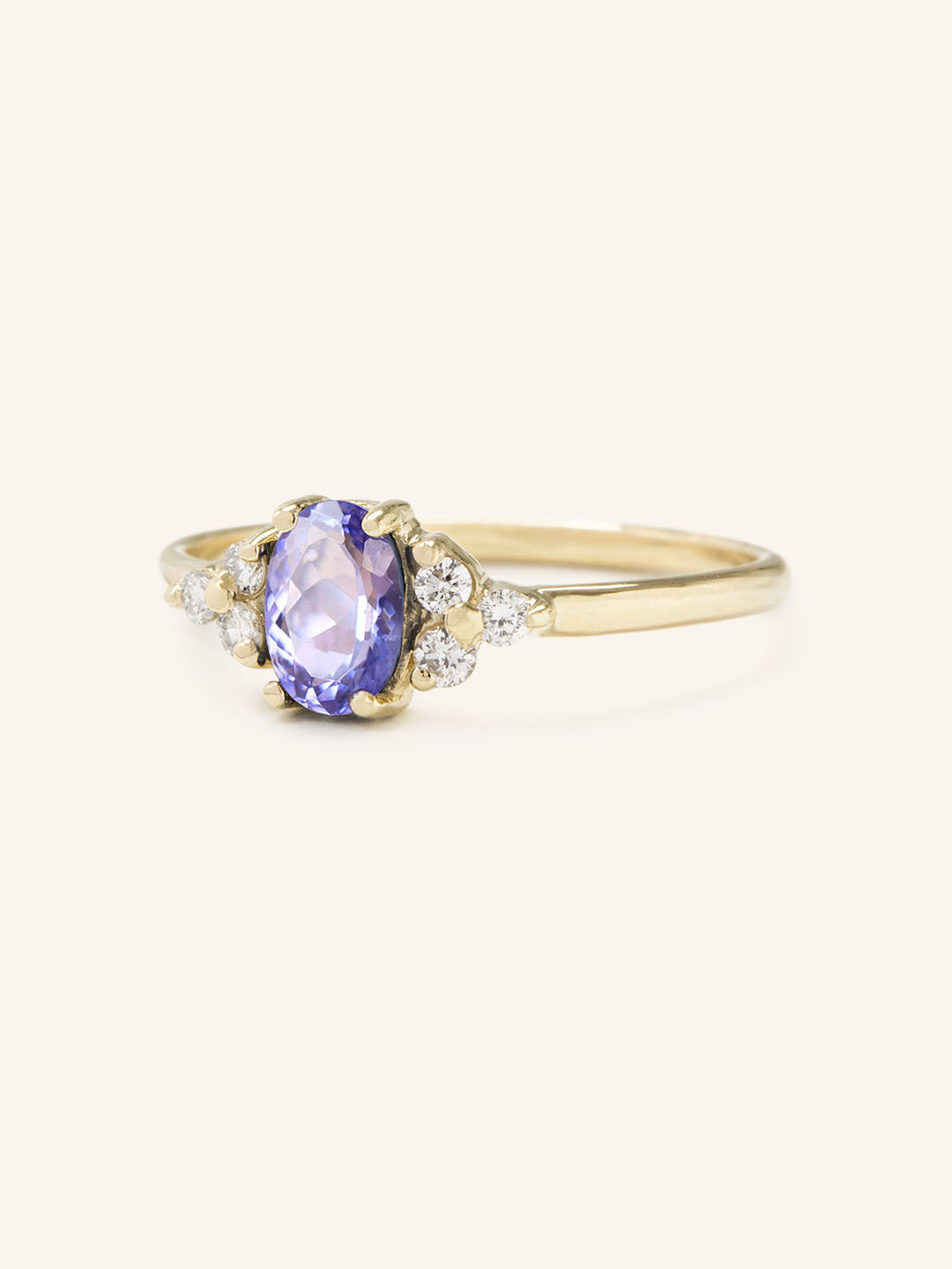 Inspired by the renewal of spring, this piece symbolizes tranquility, hope, and new beginnings. The oval-cut center gemstone is complemented by a delicate cluster of diamonds, evoking the beauty of blossoming flowers. A romantic and meaningful design, perfect for marking life’s most cherished moments.