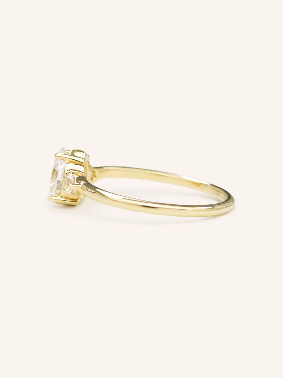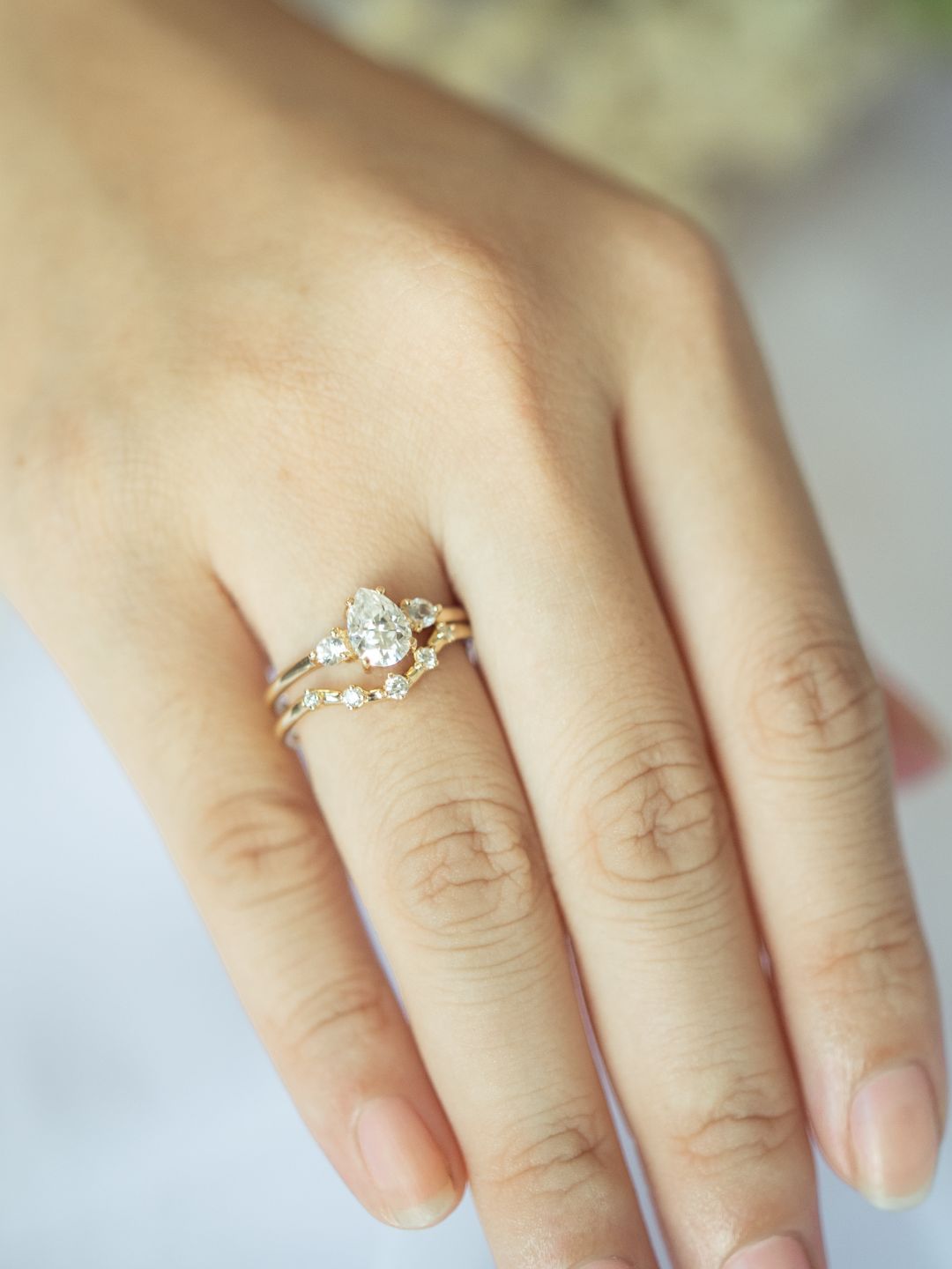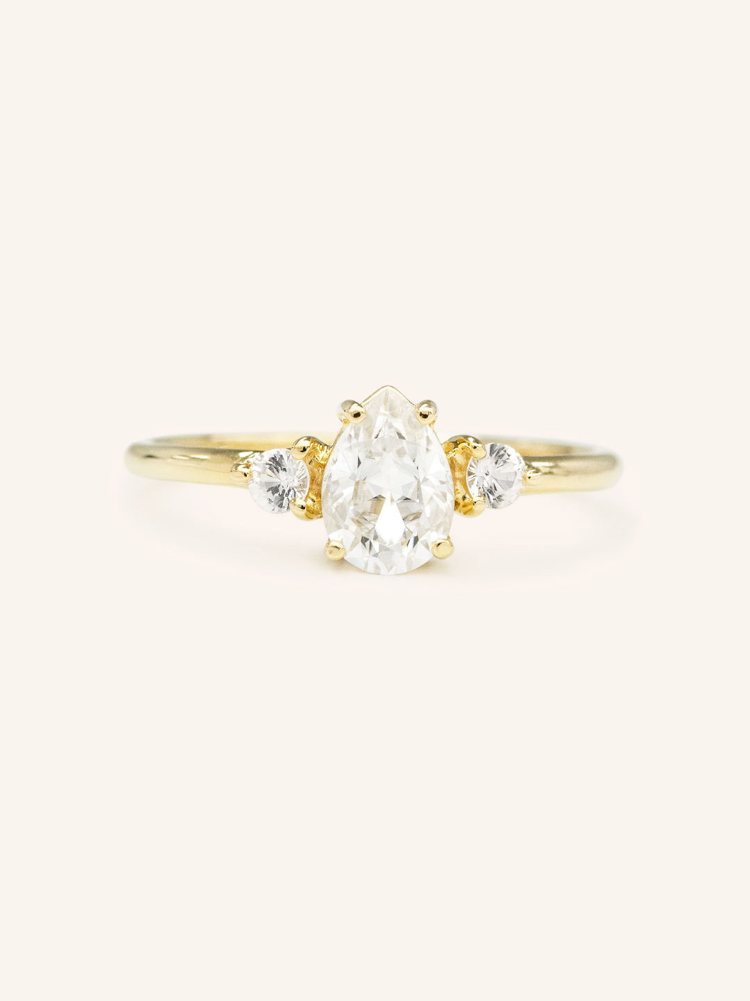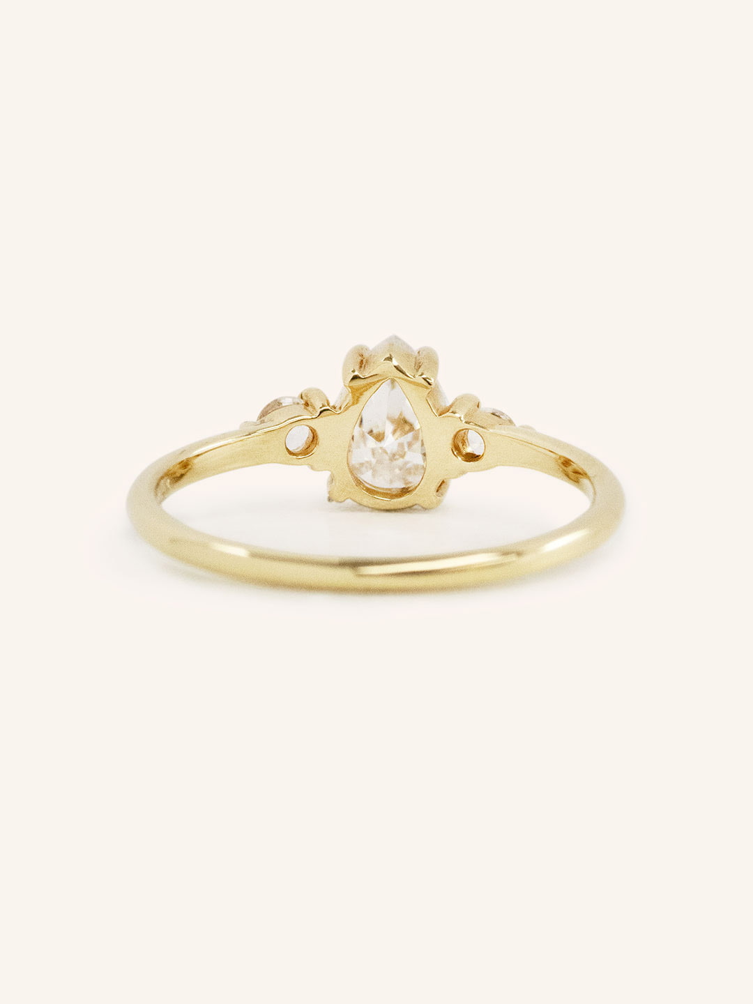Blushing Bride Moissanite Pear Three Stone Engagement Ring
