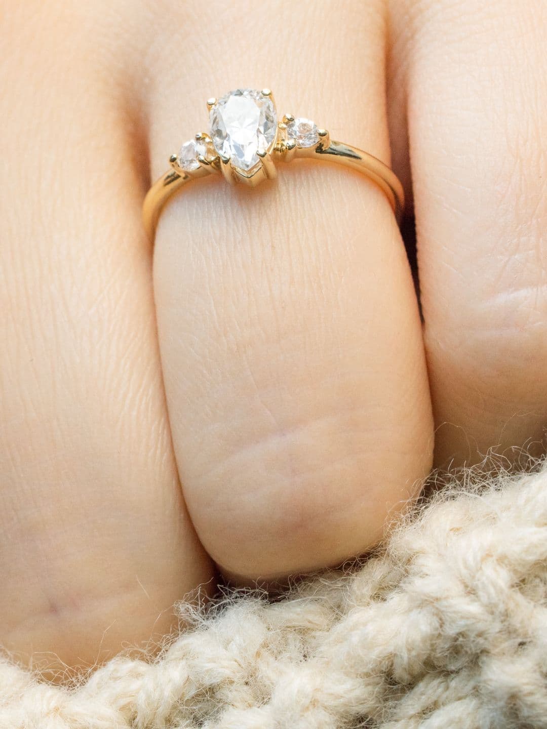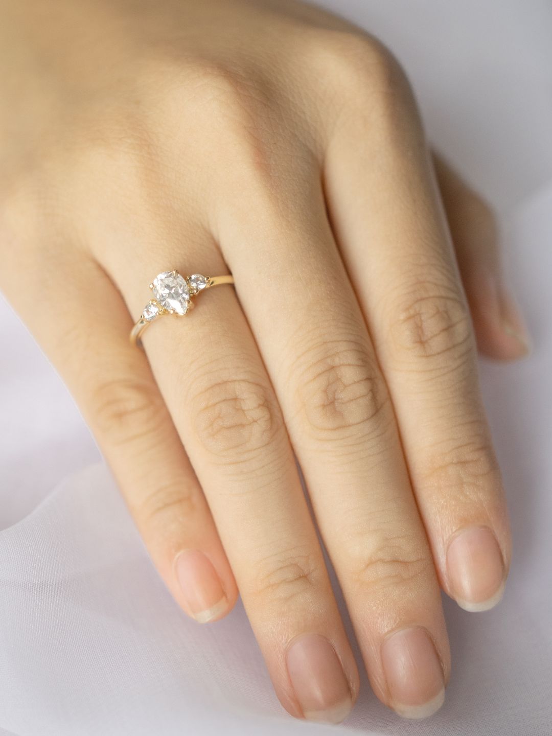 All of our engagement rings feature natural, lab-grown diamonds, and/or moissanites. They are ethically sourced and hand-selected for their quality and brilliance. Each product page specifies the stone type.