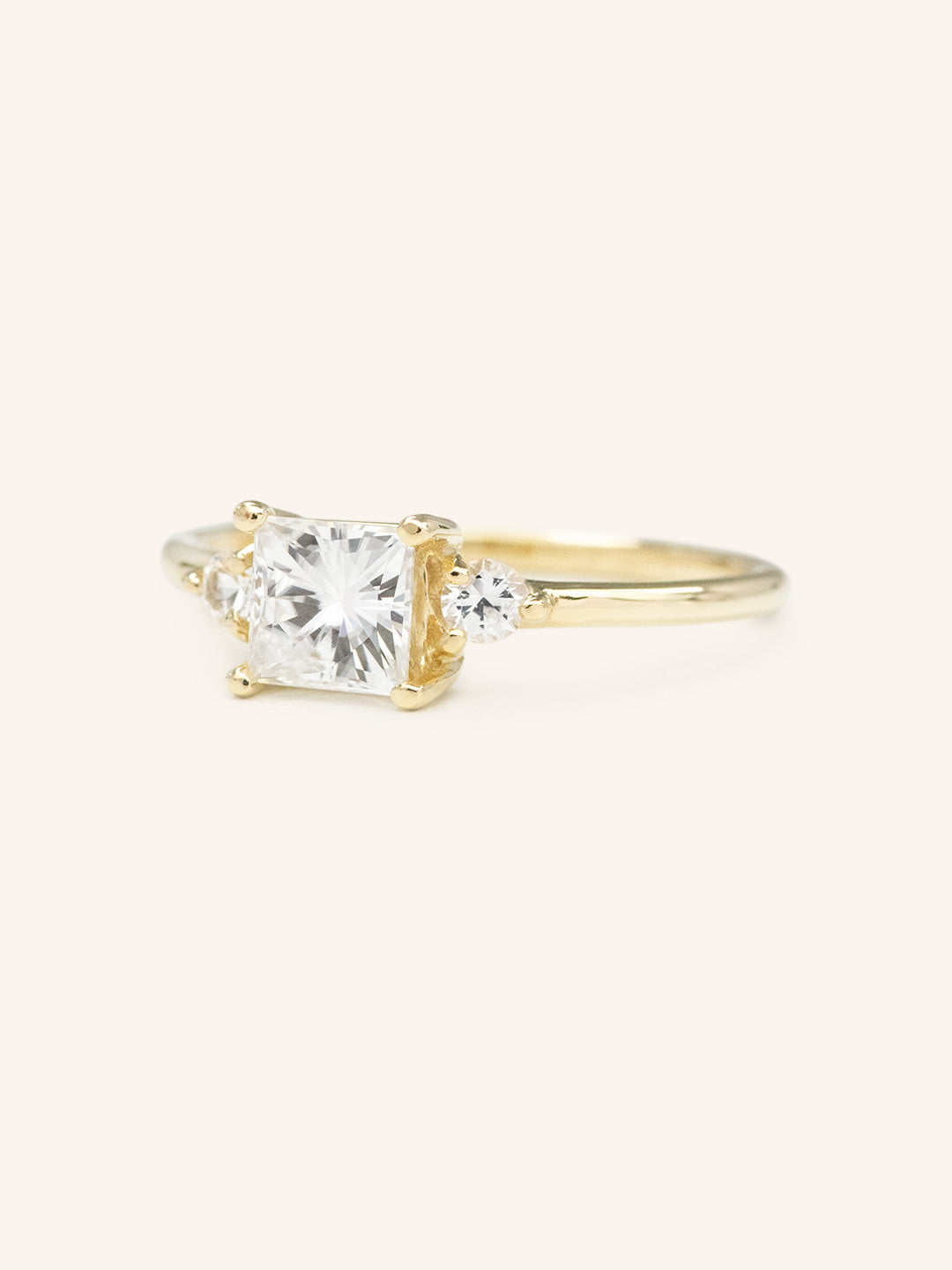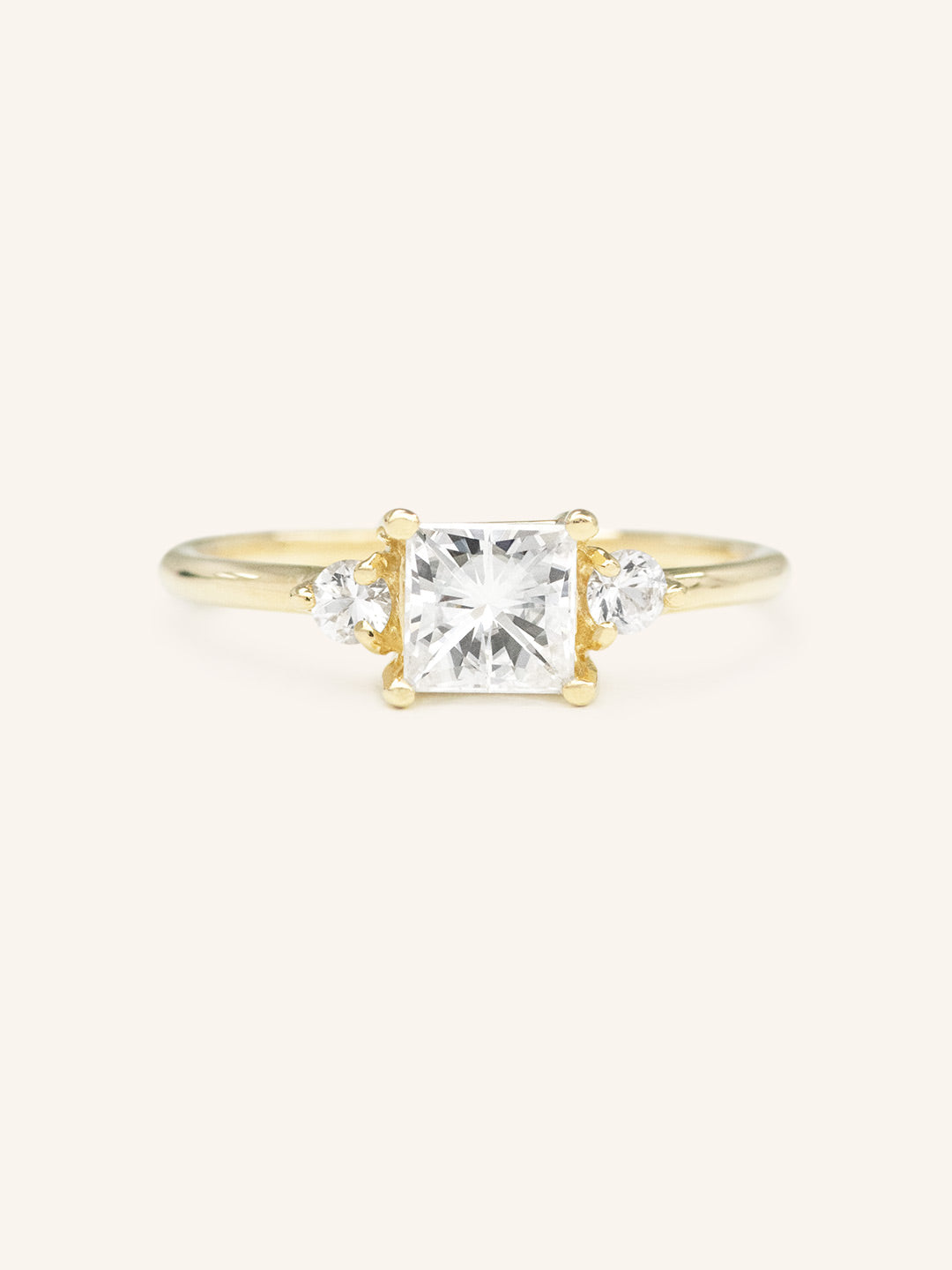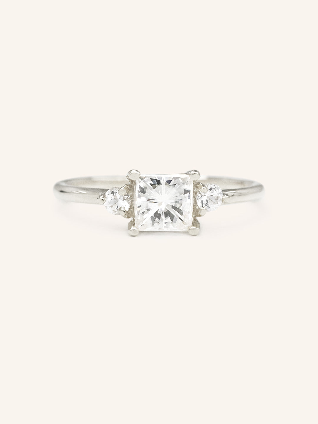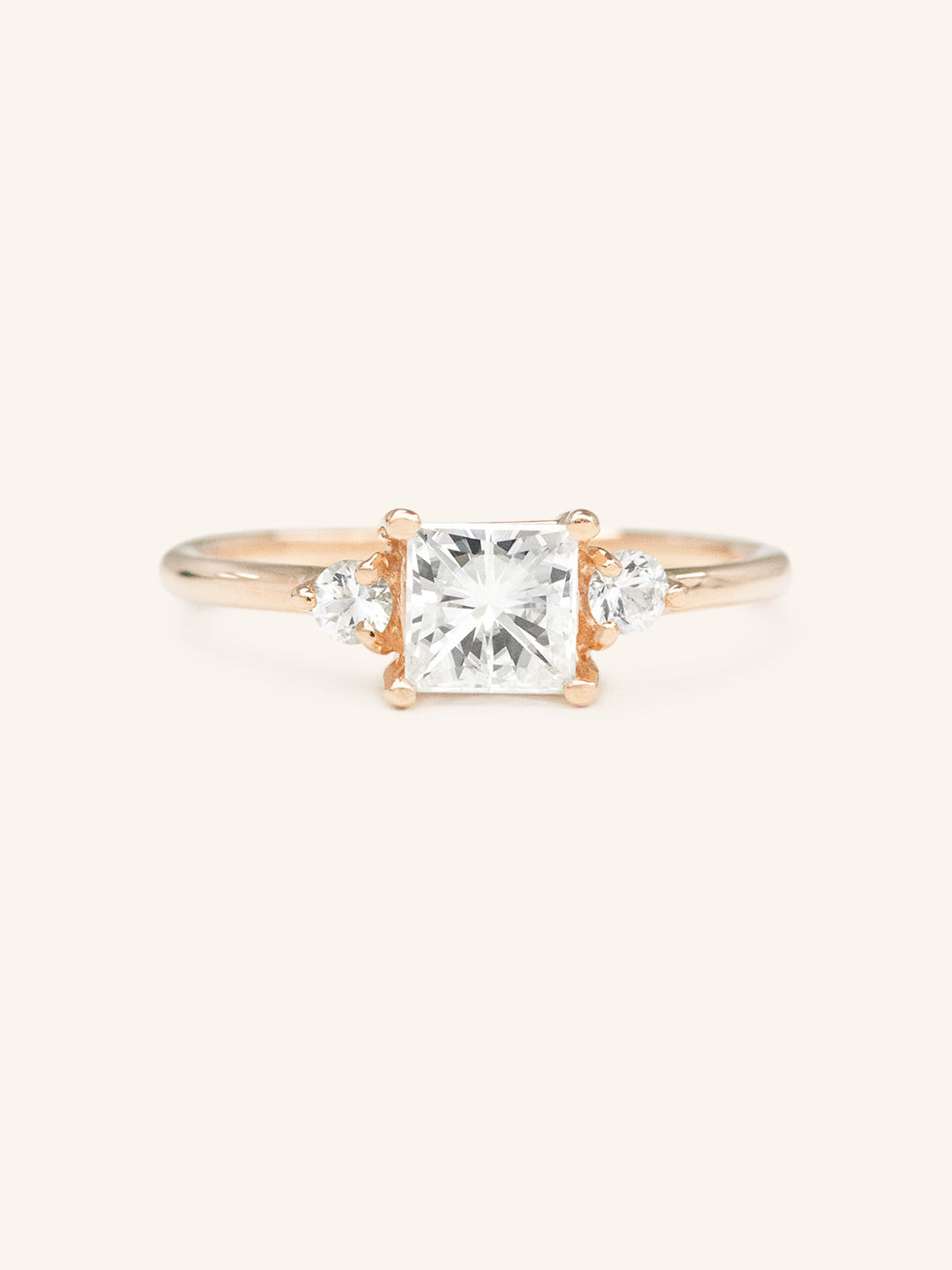 Blushing Bride Princess Cut Moissanite Three Stone Engagement Ring