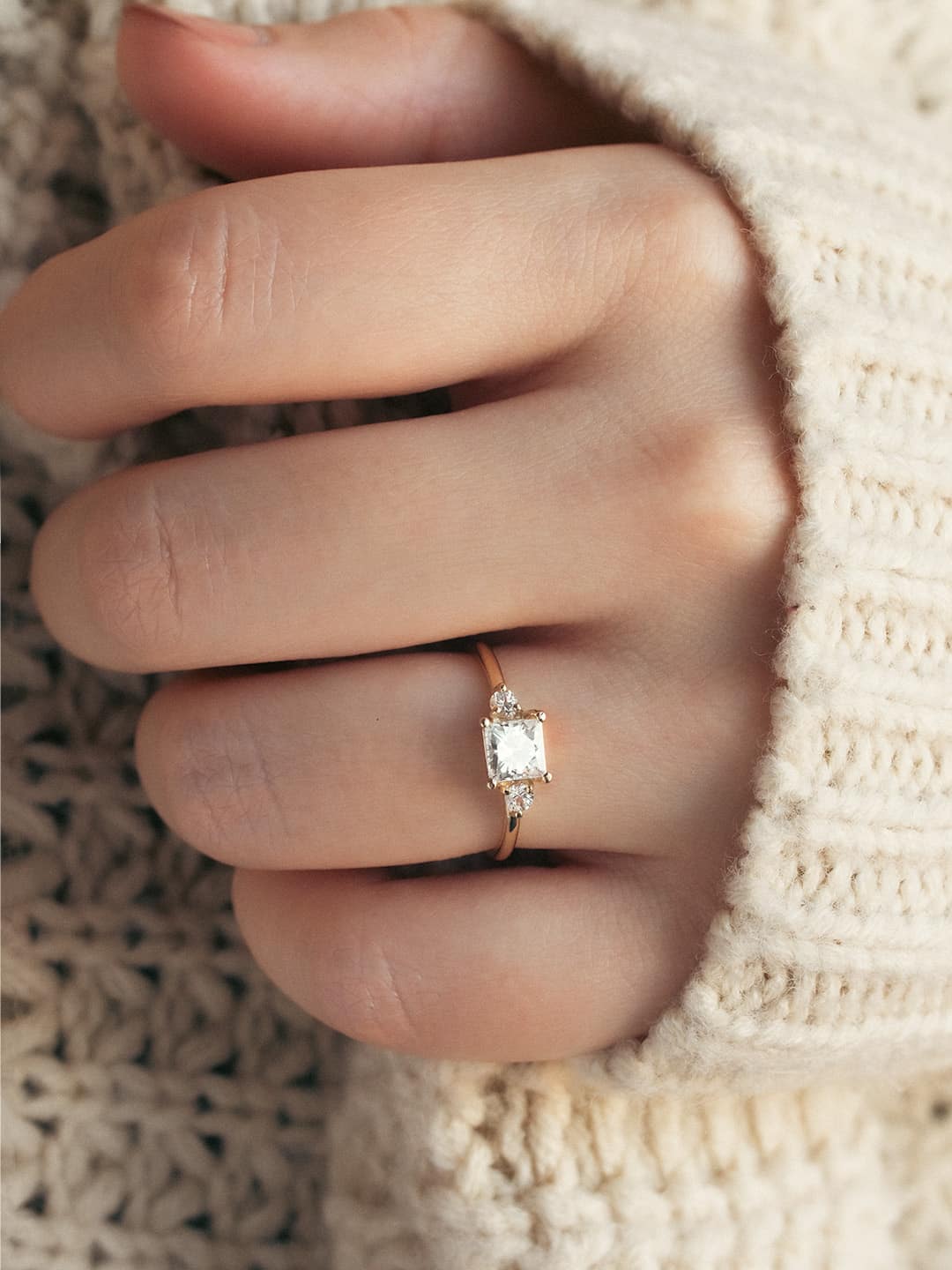 All of our engagement rings feature natural, lab-grown diamonds, and/or moissanites. They are ethically sourced and hand-selected for their quality and brilliance. Each product page specifies the stone type.