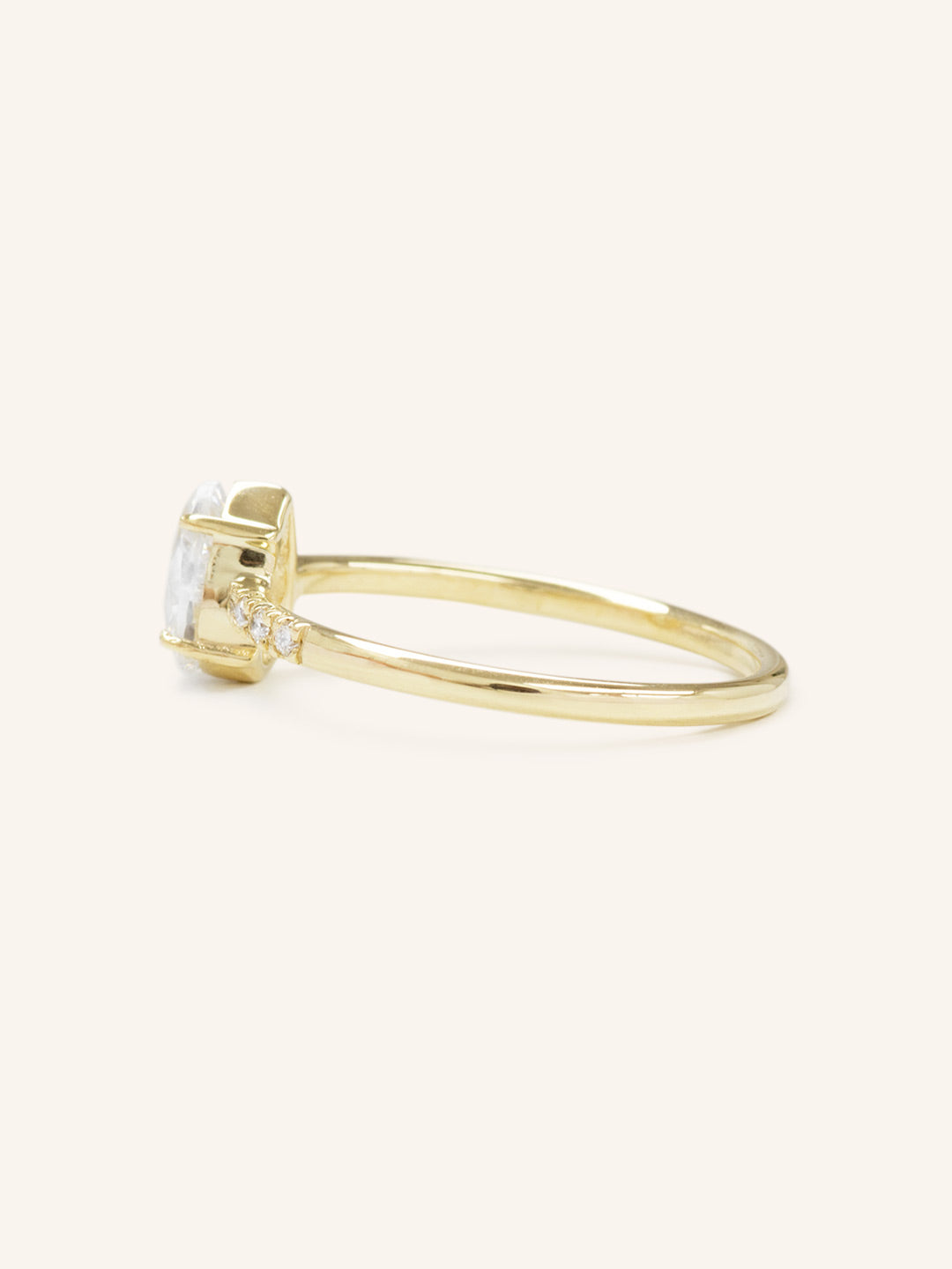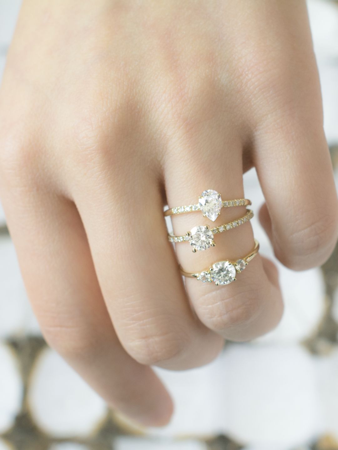All of our engagement rings feature natural, lab-grown diamonds, and/or moissanites. They are ethically sourced and hand-selected for their quality and brilliance. Each product page specifies the stone type.