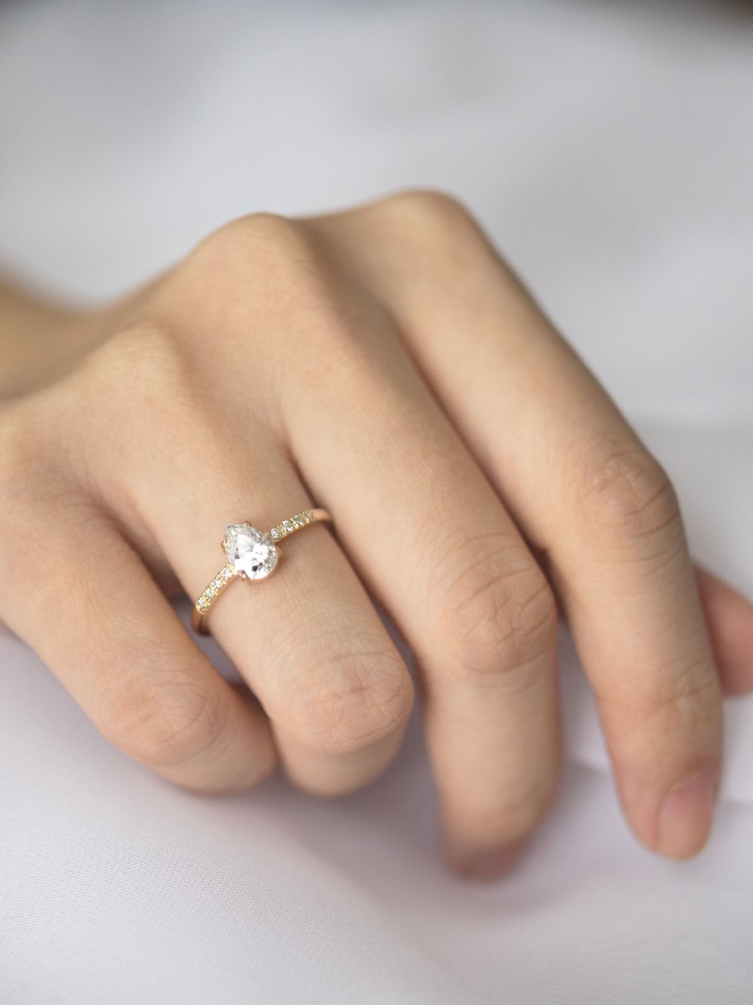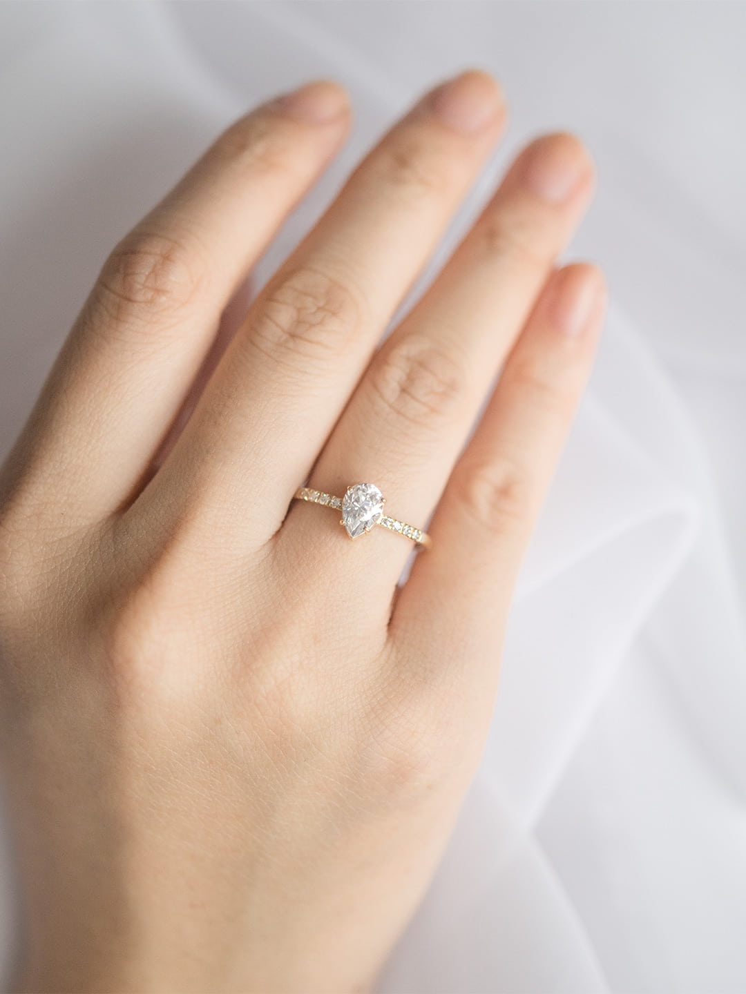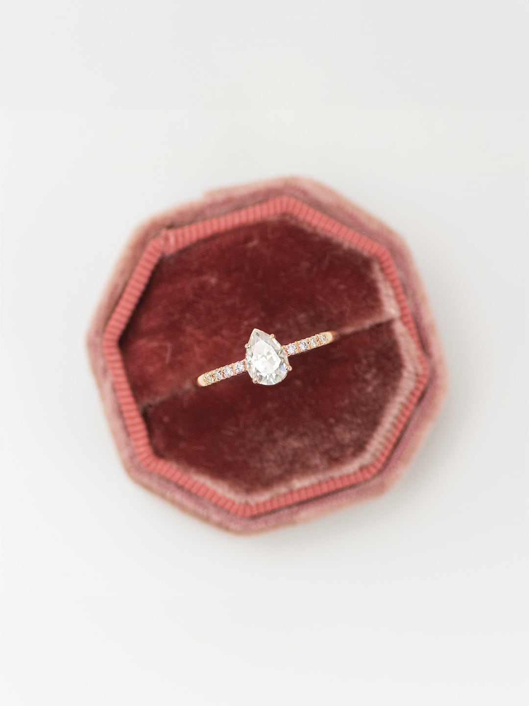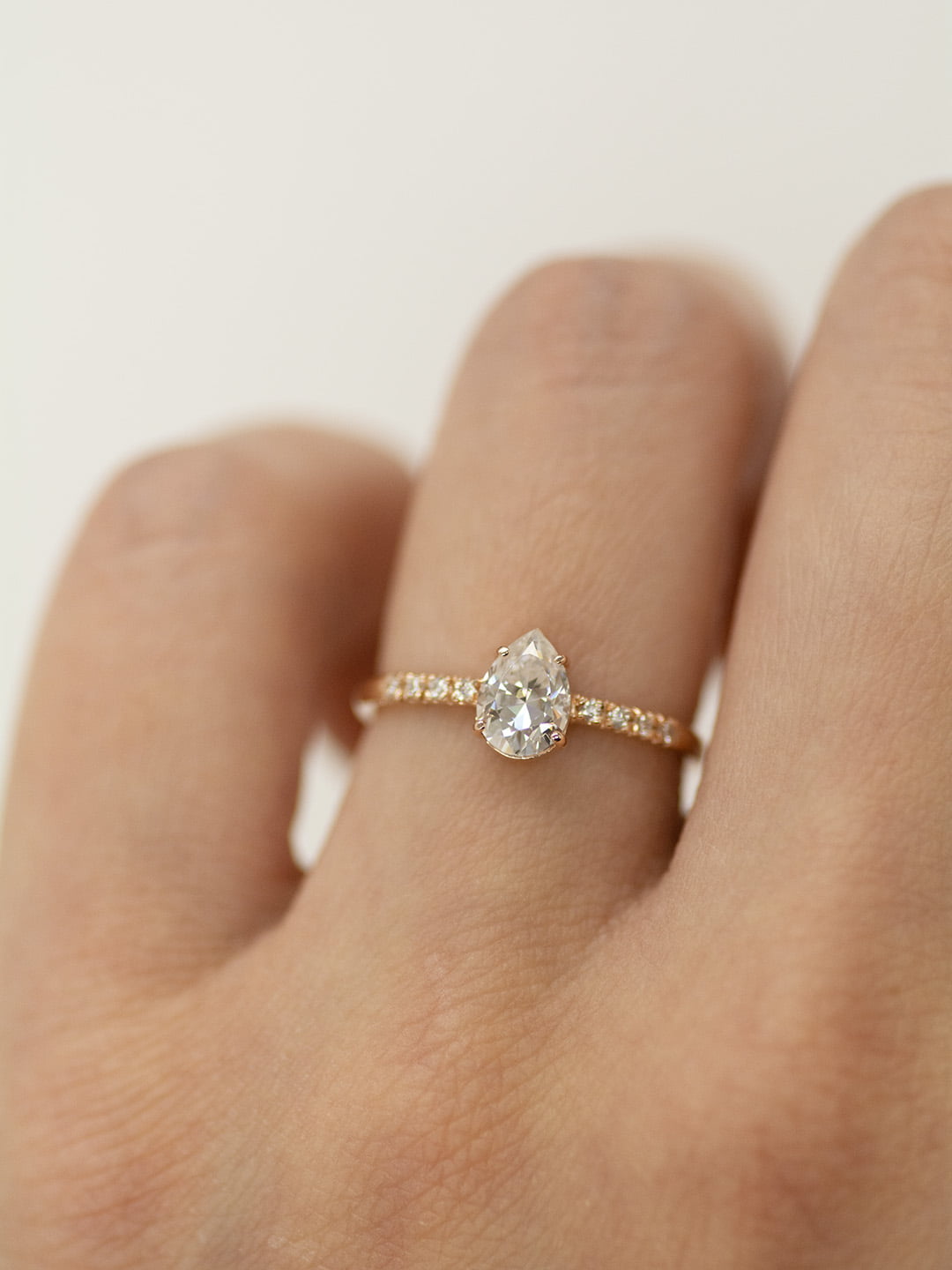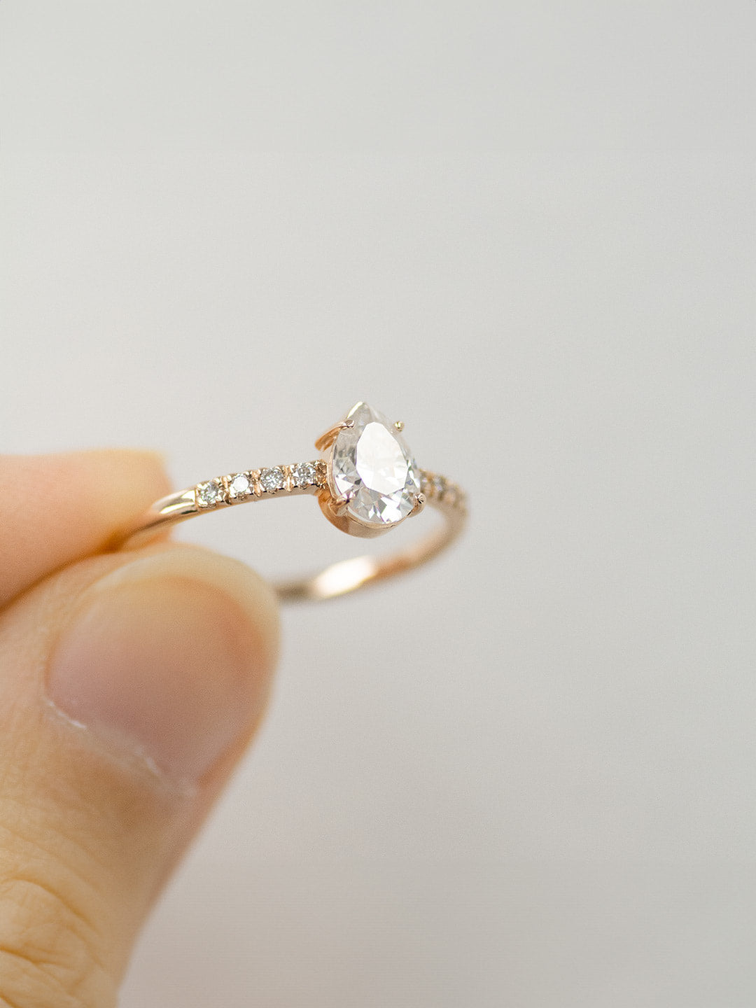Bridal Blush Pear Moissanite Diamond Accent Engagement Ring