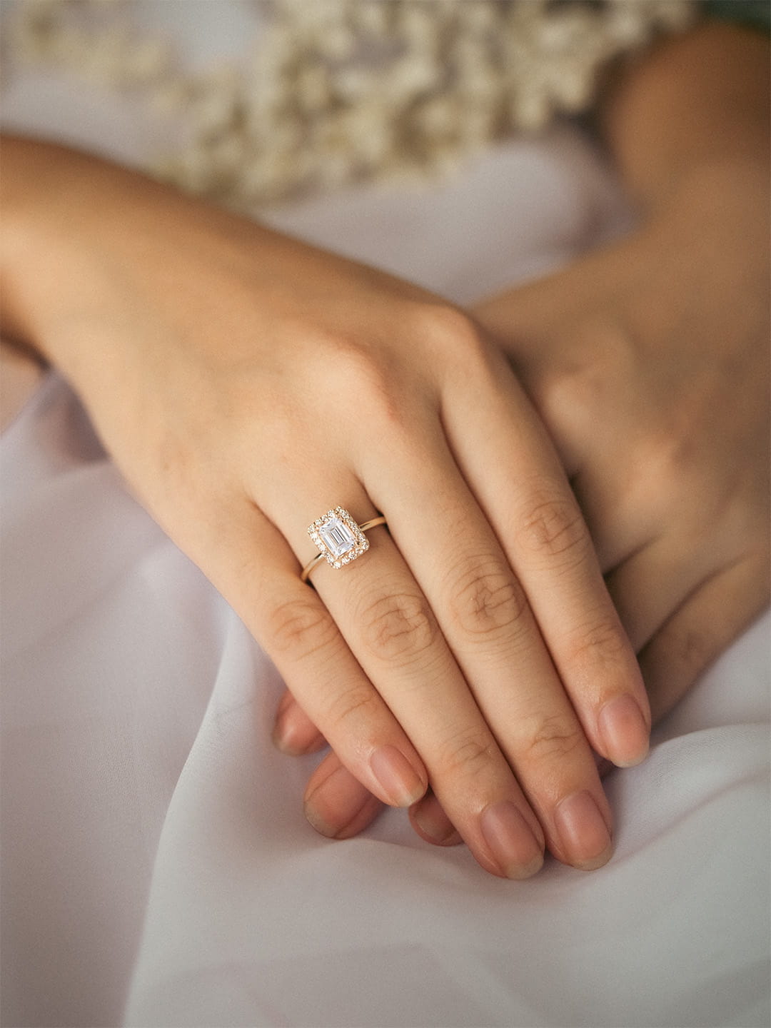 BRIDAL ROSE Halo Emerald Cut Lab-Grown Diamond Engagement Ring