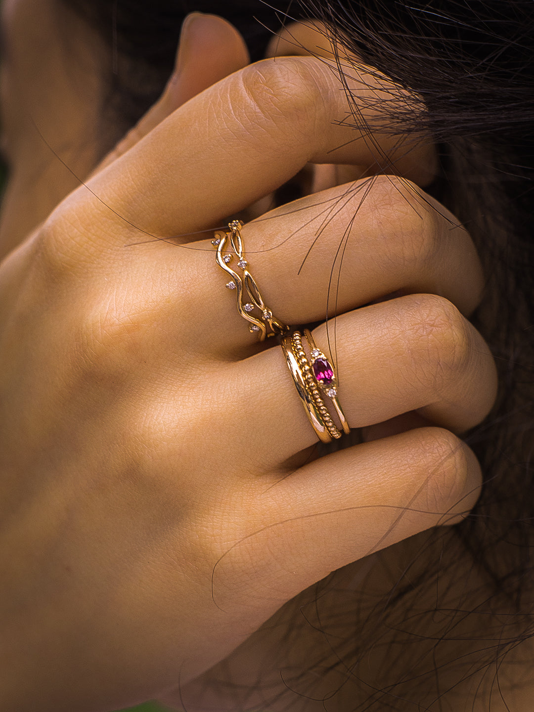 - Check for any loose stones or prongs. If something feels off, pause wearing the piece and contact our customer care team for support.