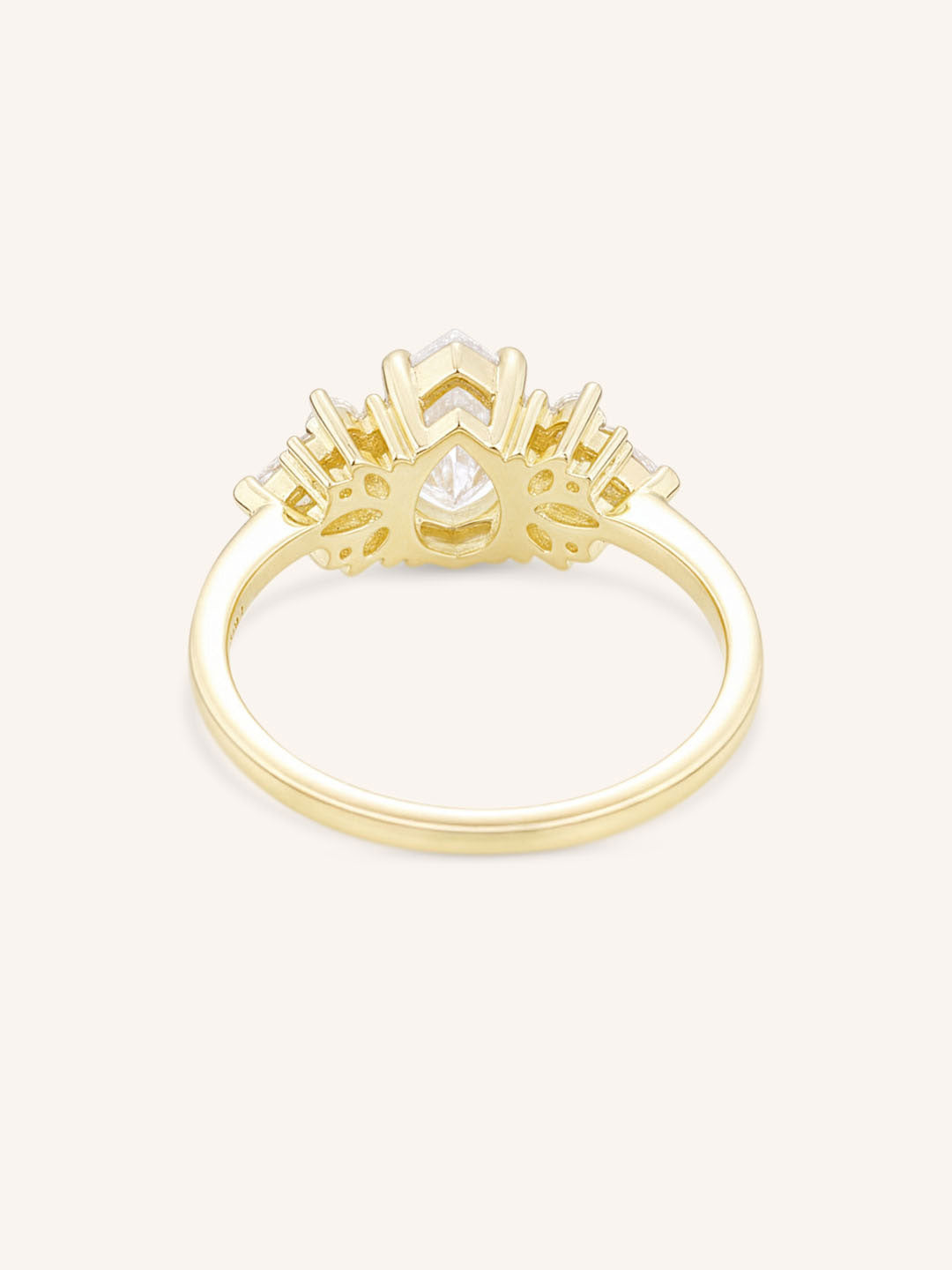 Featuring a pear shape faceted lab-grown diamond, available in 9x6mm size. *Sizes are approximate and measurements are subject to change/alter to fit. The center stone will come graded with a certified report.