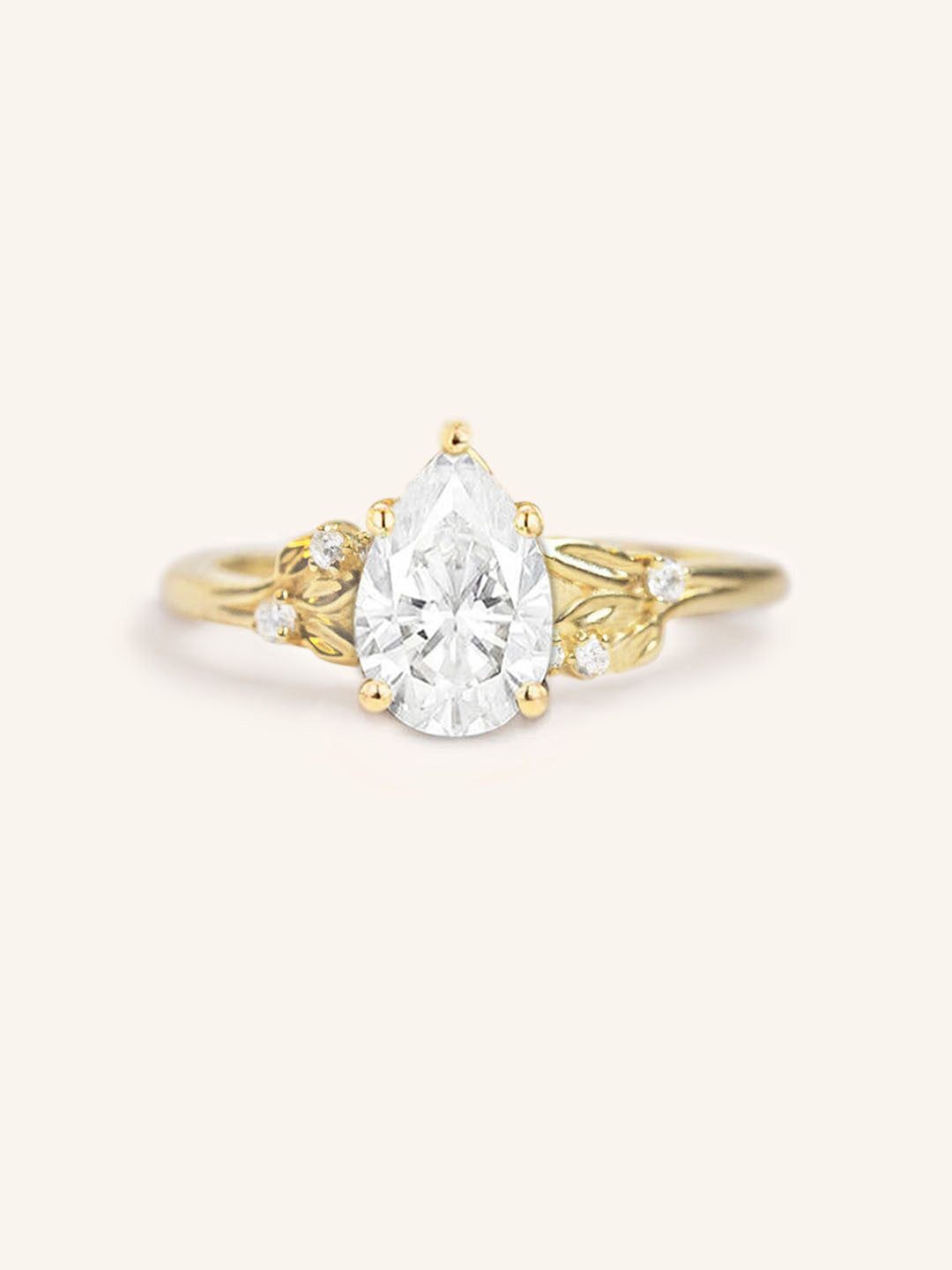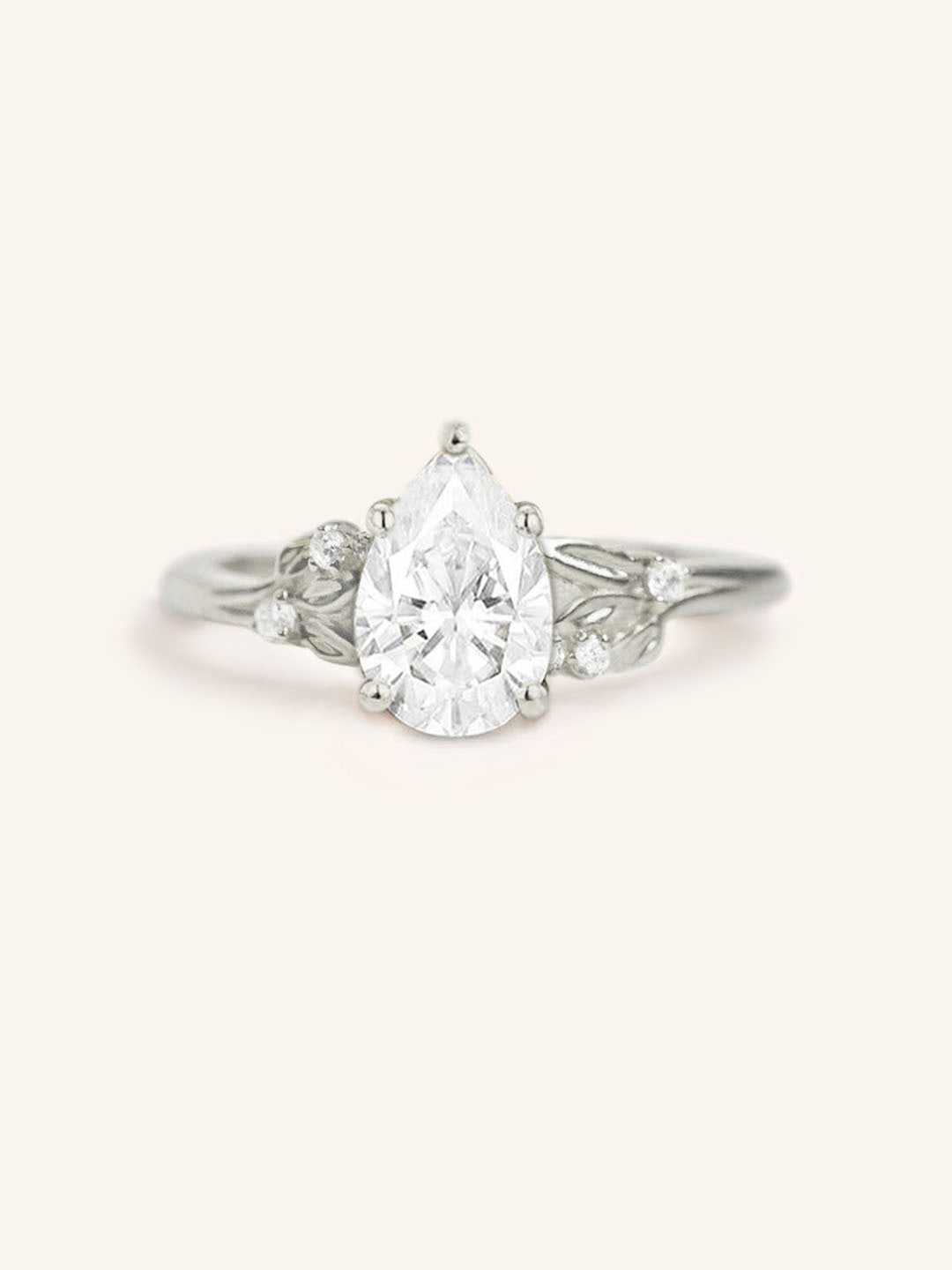 Featuring a pear faceted lab-grown diamond, available in 8x5mm, 9x6mm, or 10x7mm size. *Sizes are approximate and measurements are subject to change/alter to fit. The center stone will come graded with a certified report.