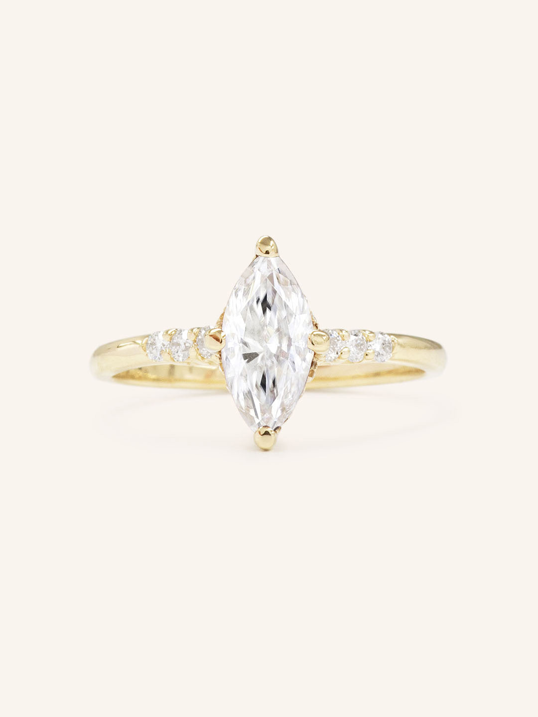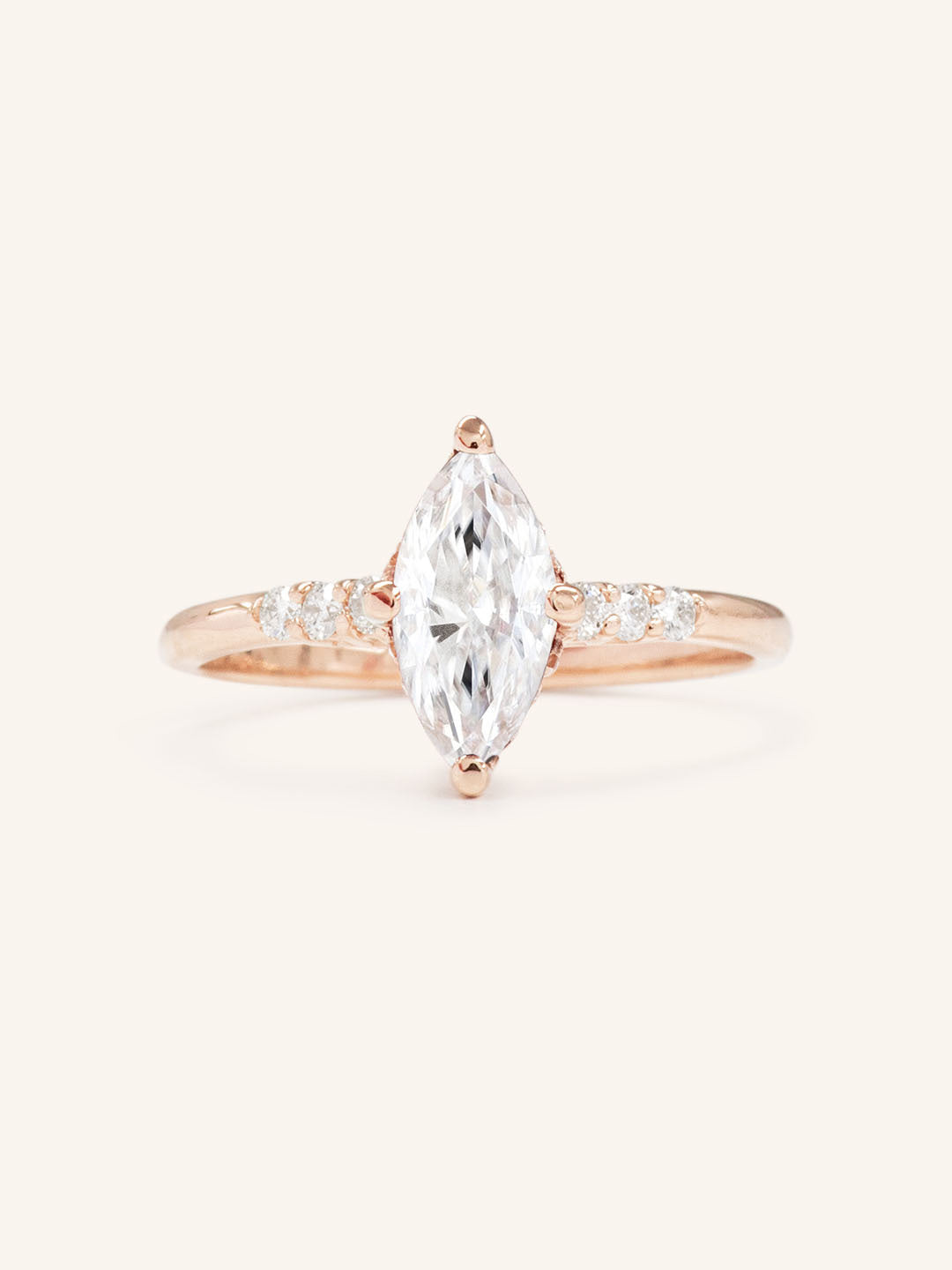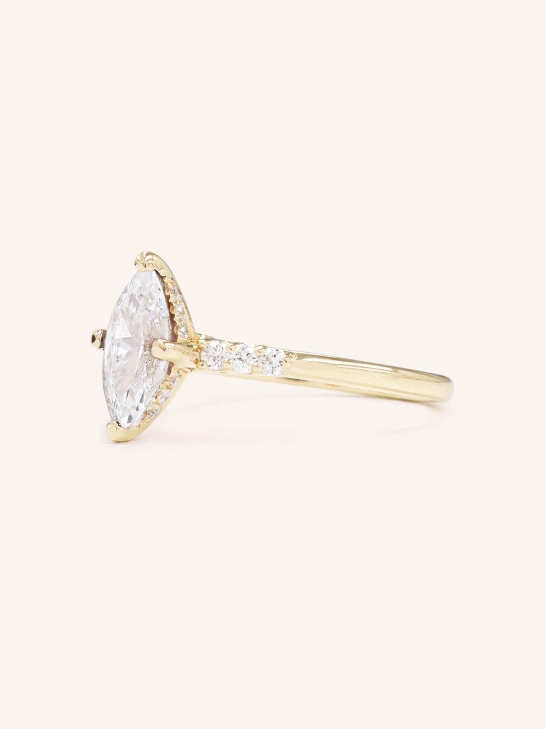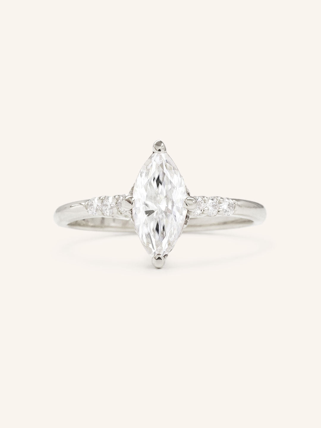 Hidden Halo Marquise Moissanite Engagement Ring with Diamond Accents