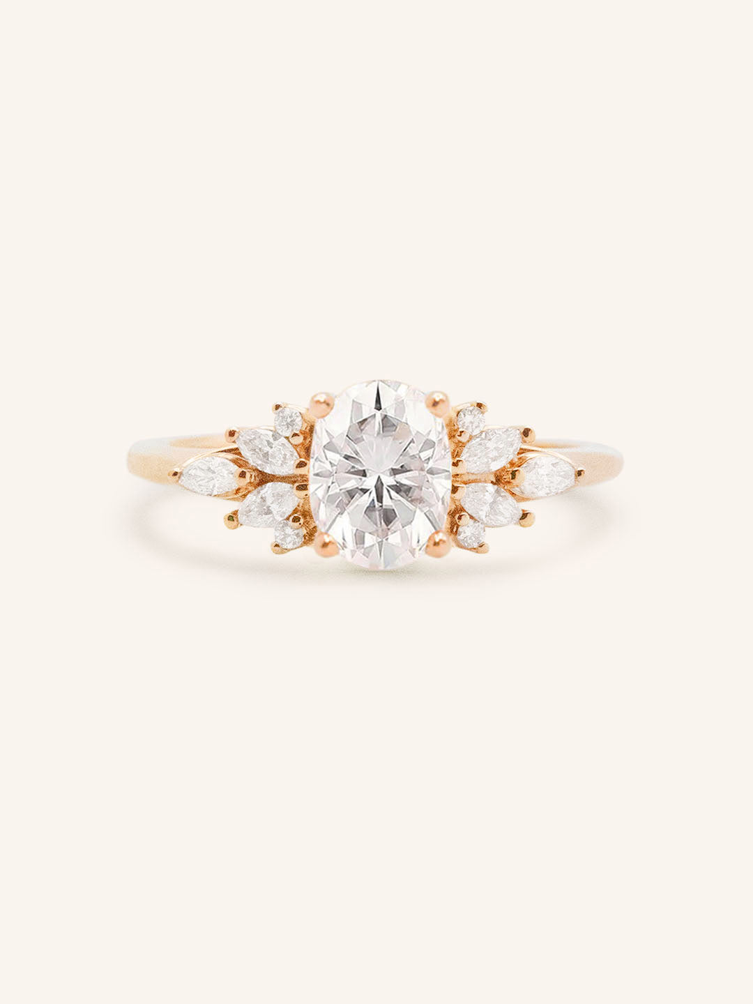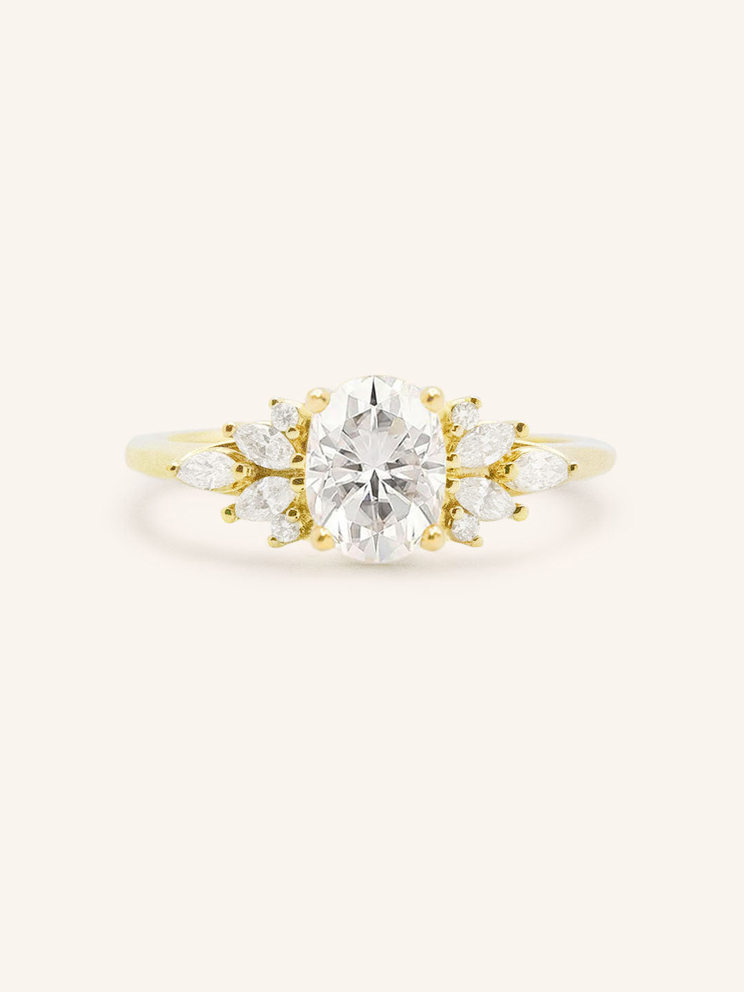 The Janess Cluster Engagement Ring captivates with its breathtaking design, featuring a radiant oval center diamond encircled by a shimmering cluster of marquise diamonds. Set in luxurious 14k gold, this ring exudes a timeless elegance that’s both classic and contemporary. Perfect for the modern bride who desires a ring that’s as unique and dazzling as her love story.