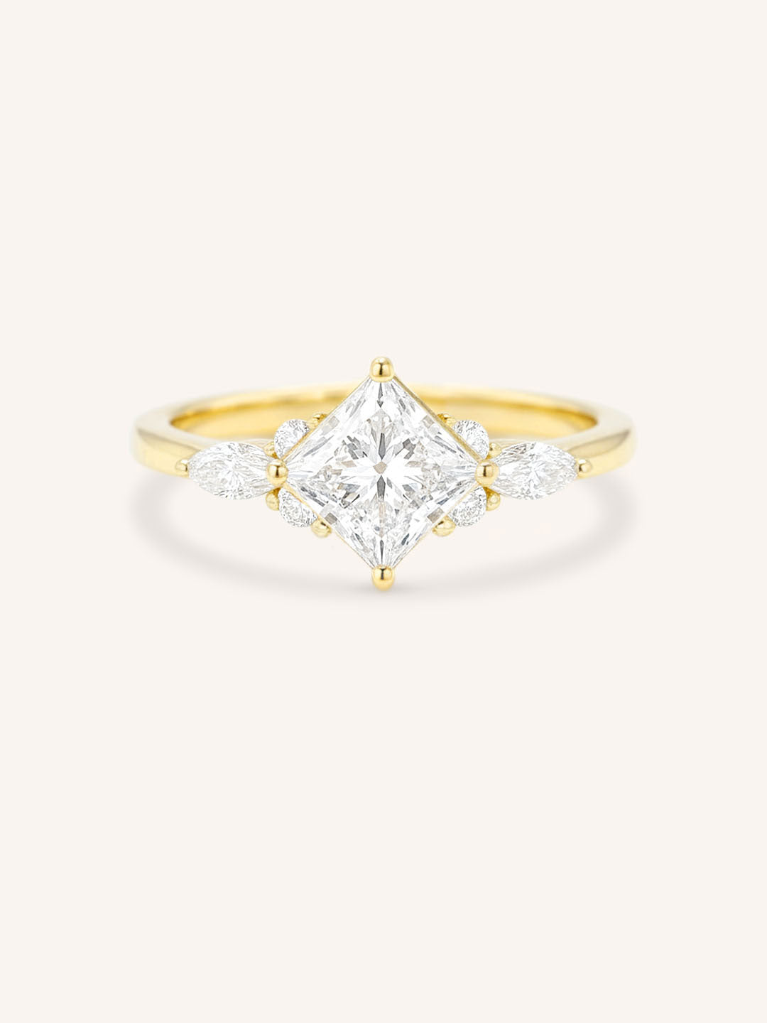 All of our engagement rings feature natural, lab-grown diamonds, and/or moissanites. They are ethically sourced and hand-selected for their quality and brilliance. Each product page specifies the stone type.