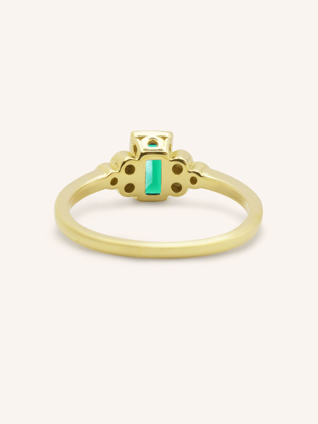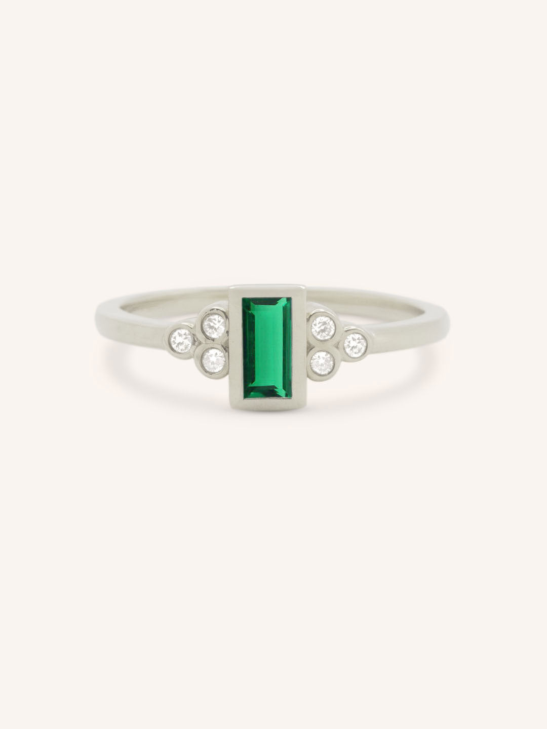 - One (1) Straight Step-Cut Baguette Lab-Grown Emerald (approx 0.12 ctw / 6x3mm, AA grading)