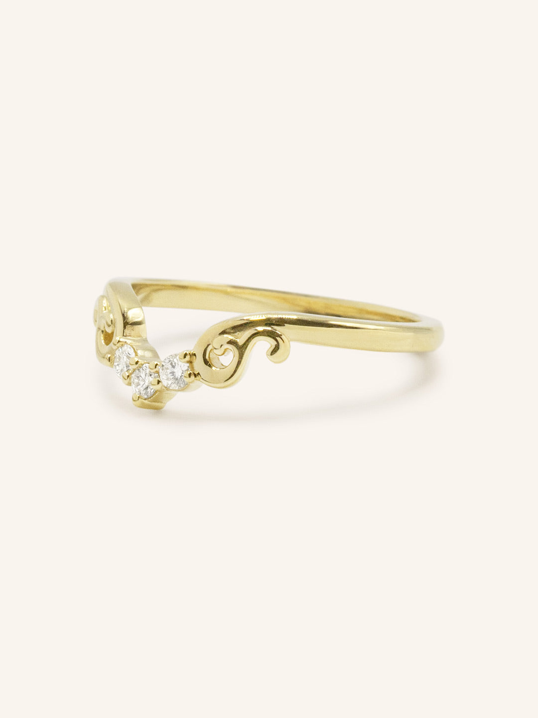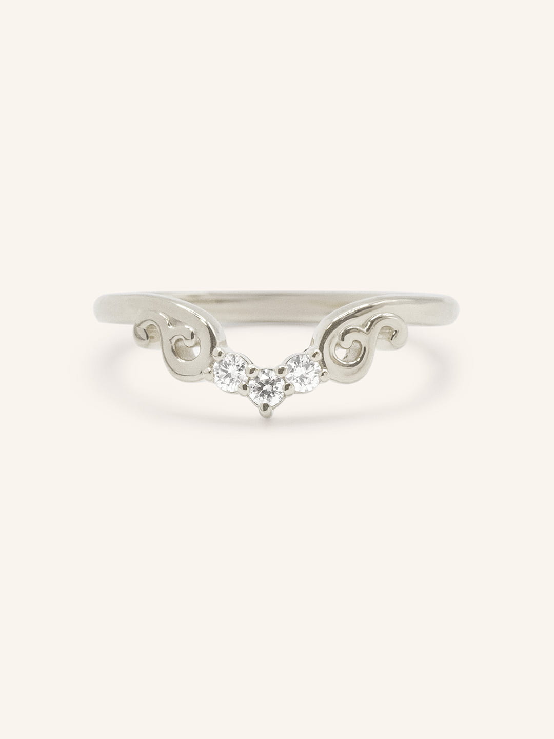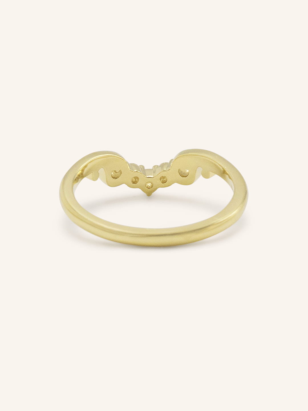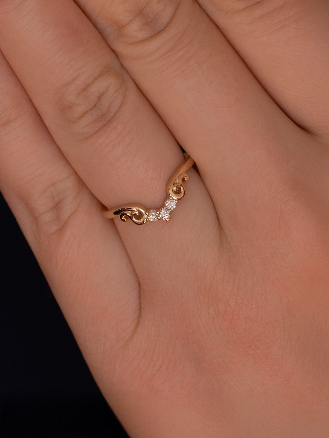 The Aggie Contour Diamond Wedding Band exudes vintage charm with its gracefully curved design, crafted to complement an engagement ring effortlessly. Featuring shimmering diamonds set in intricate detailing, this band captures timeless elegance with a hint of old-world romance. Perfect for stacking or wearing alone, it’s a refined choice for those who appreciate vintage-inspired beauty.