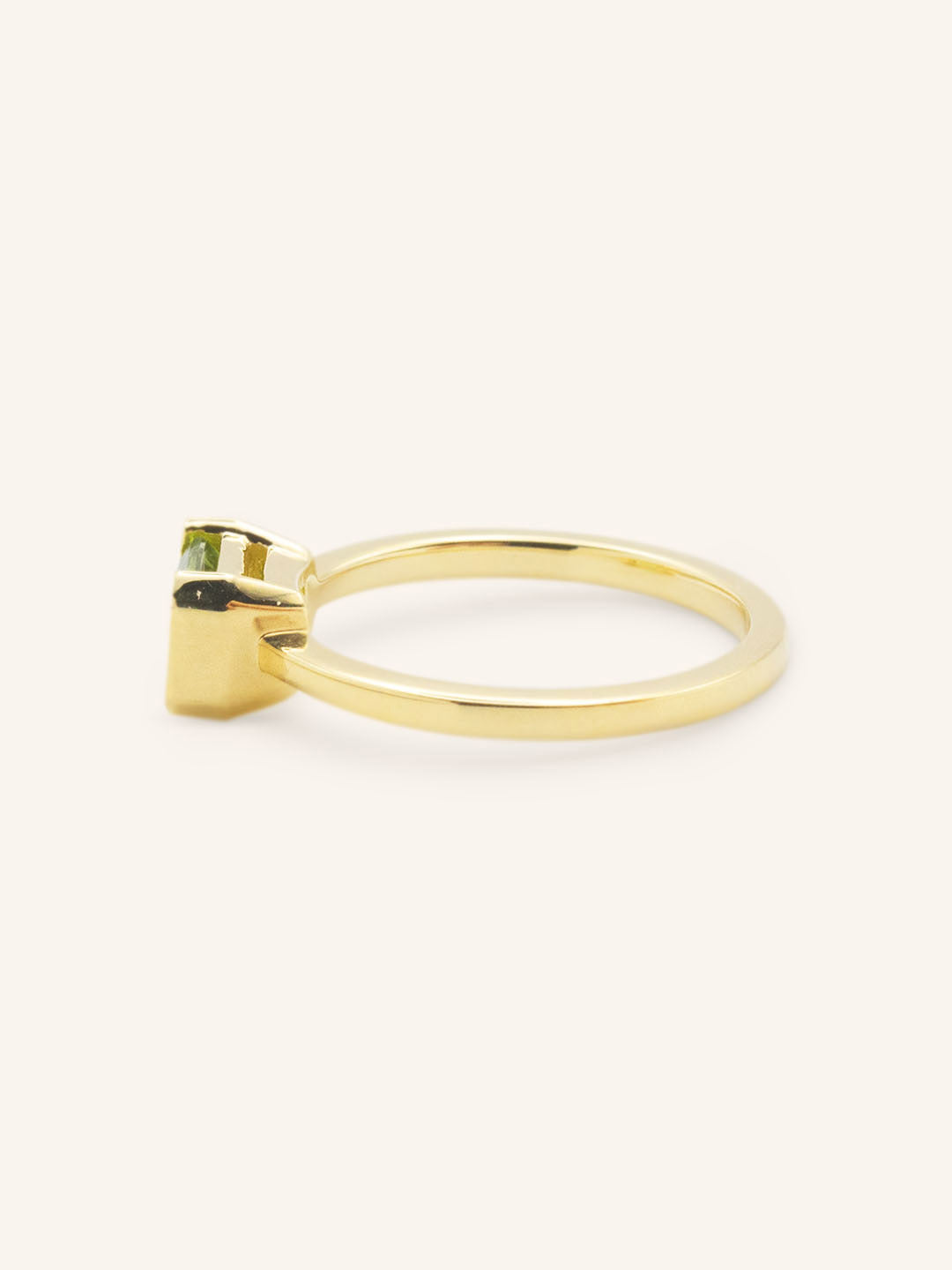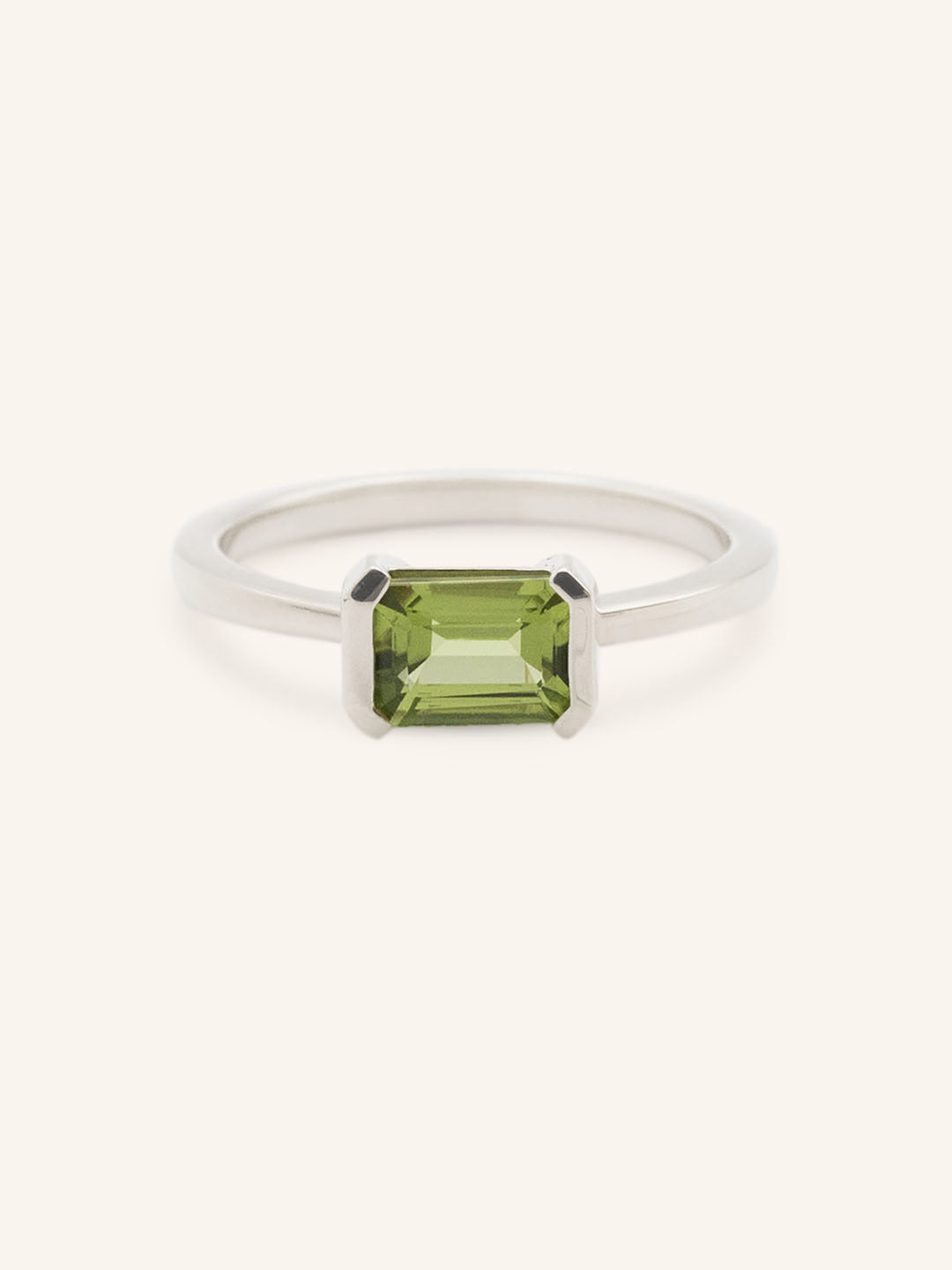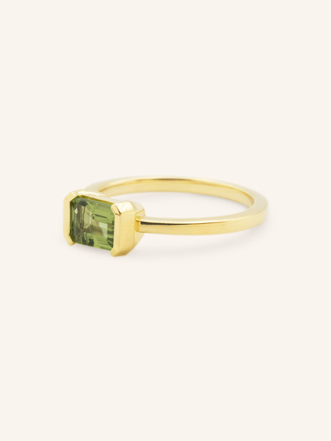 Arden Emerald Cut Peridot Half-Bezel Solitaire Ring
