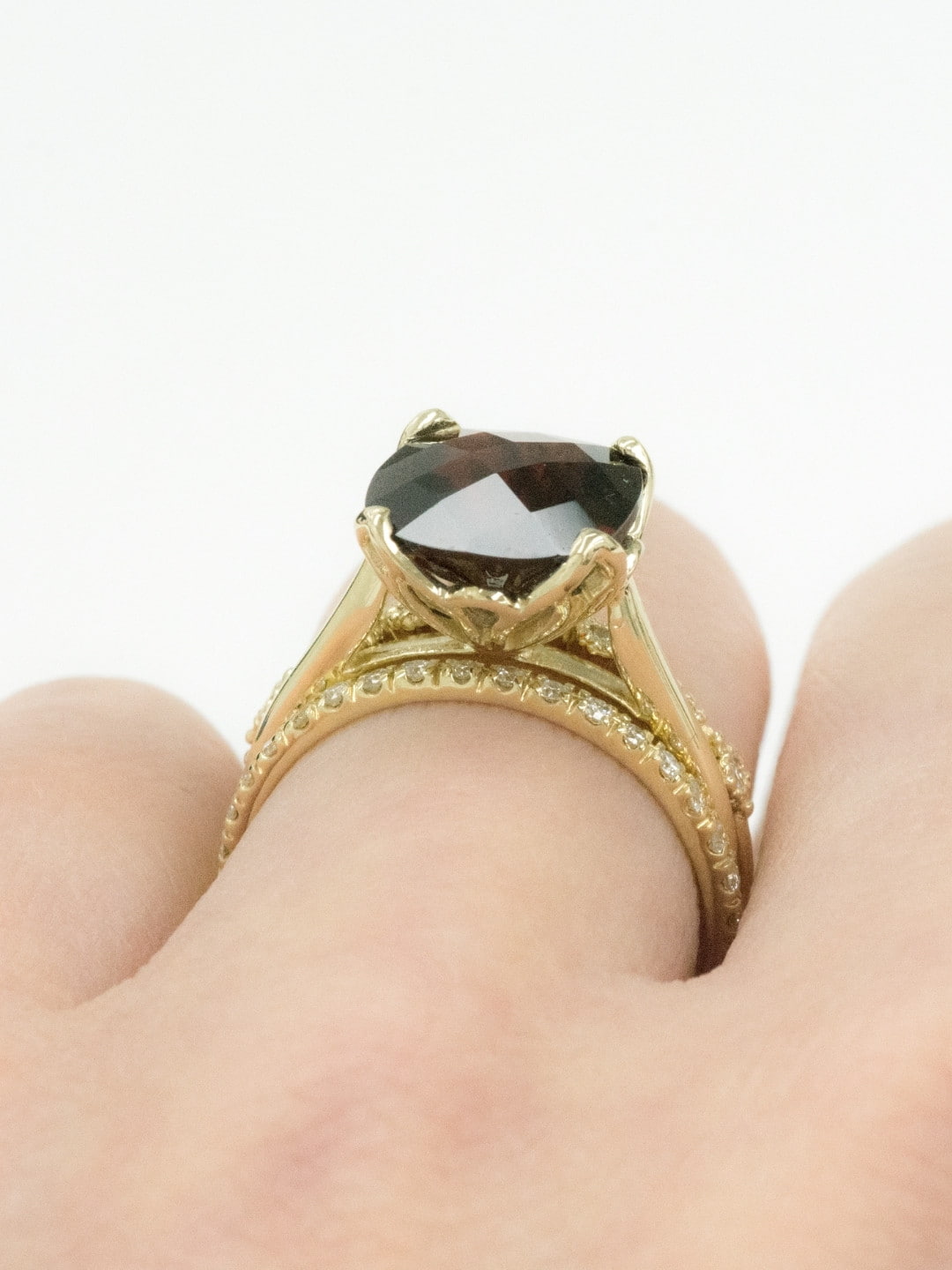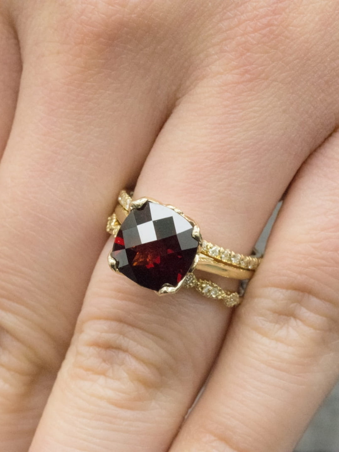 The bittersweet moment of love that is a fleeting moment in time. A garnet is the quintessential symbol of love and commitment. The timelessness of the this stone has been known to symbolize eternal love, loyalty, and constancy. The deep red of the garnet, like that of the most vibrant colors of Autumn, is the perfect way to represent your passion and love.