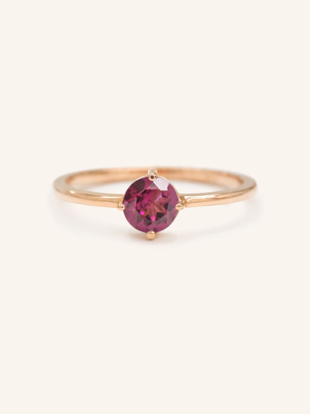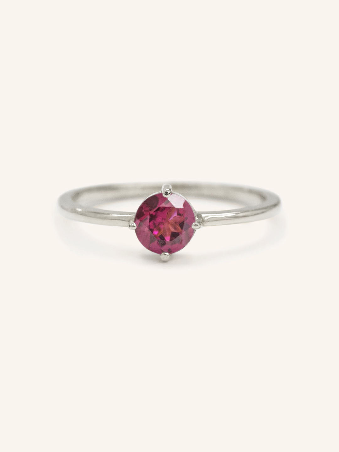 - One (1) Round Natural Rhodolite Garnet (approx 0.65 ctw/ 5.00 mm, AA grading)
