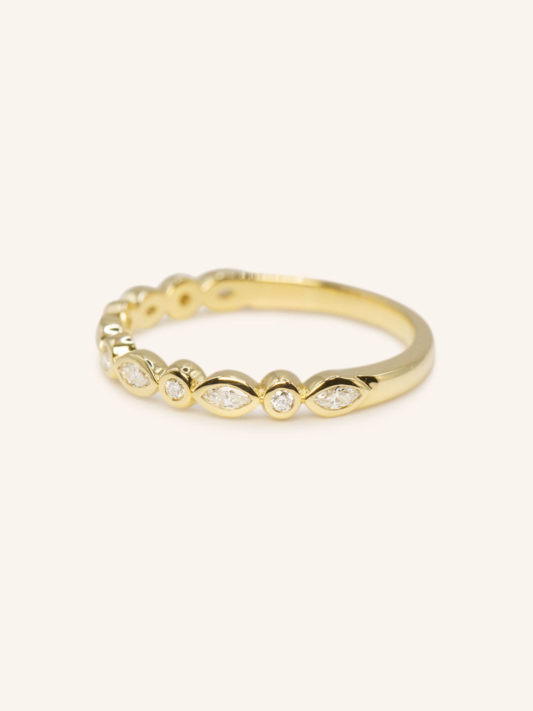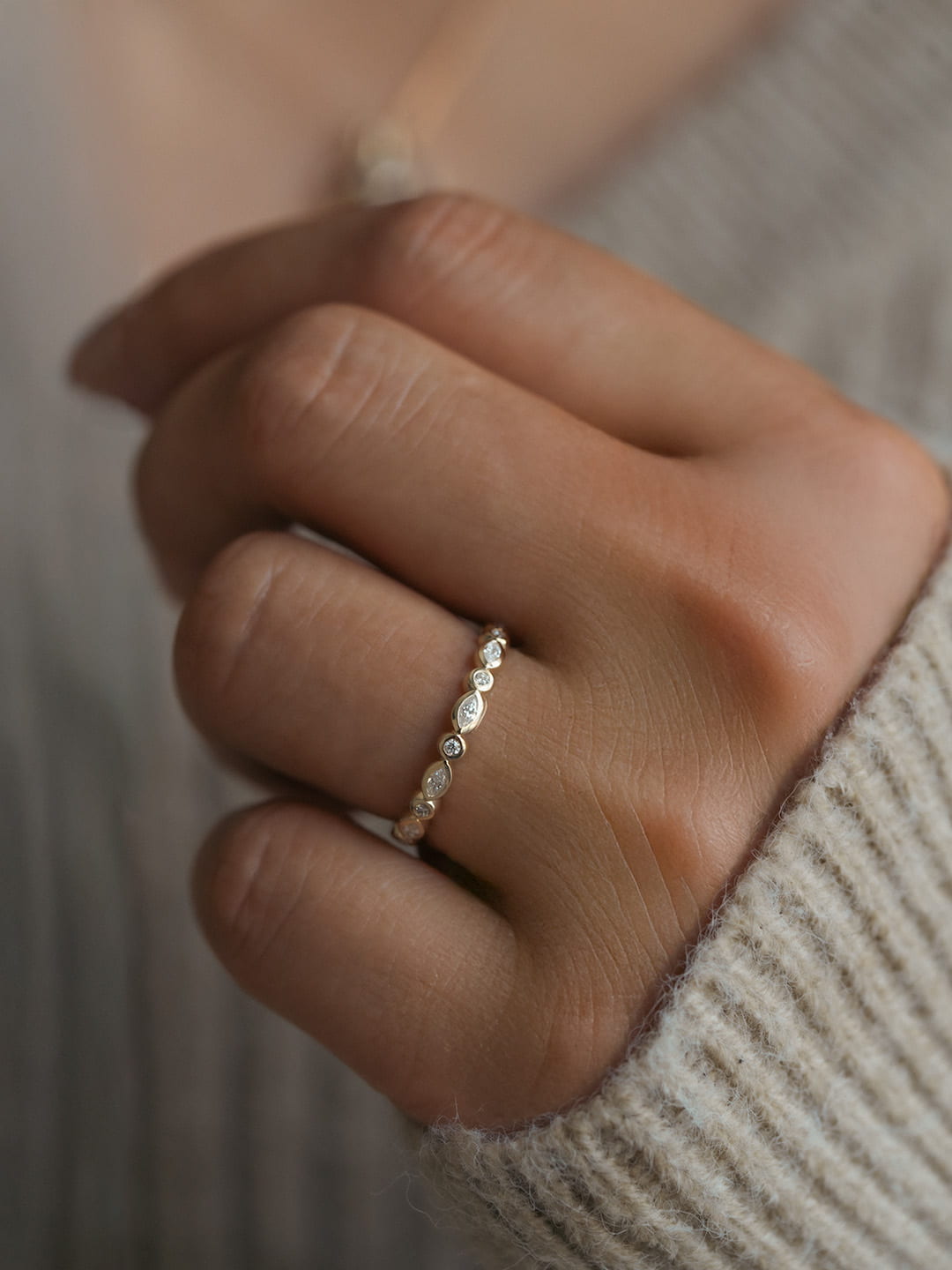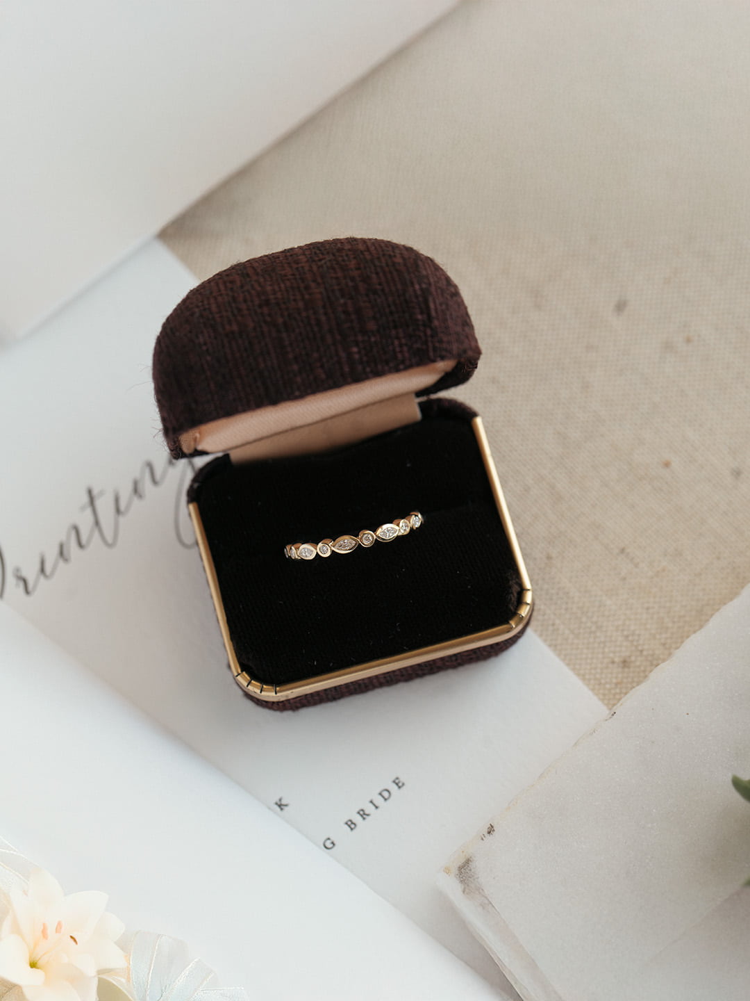 The Cedar Glen Diamond Anniversary Band is a timeless symbol of love, featuring bezel-set diamonds in a half-eternity design crafted from 14k gold. The bezel setting not only enhances the diamonds’ brilliance but also provides added security, making this band perfect for everyday wear. Whether worn alone or paired with an engagement ring, this elegant band commemorates your most cherished milestones and the love that endures.