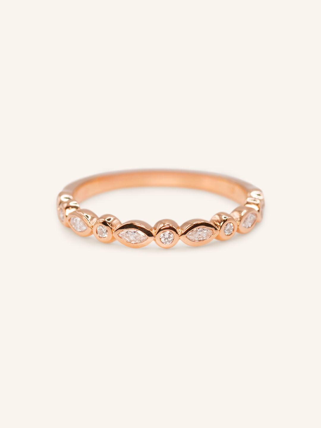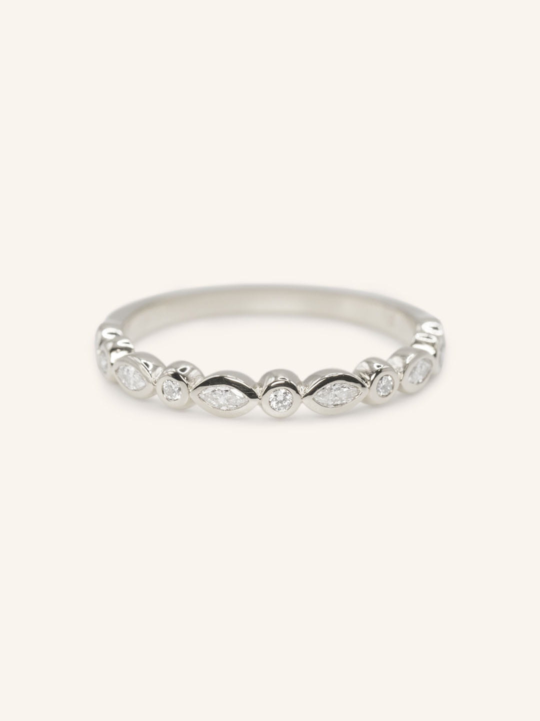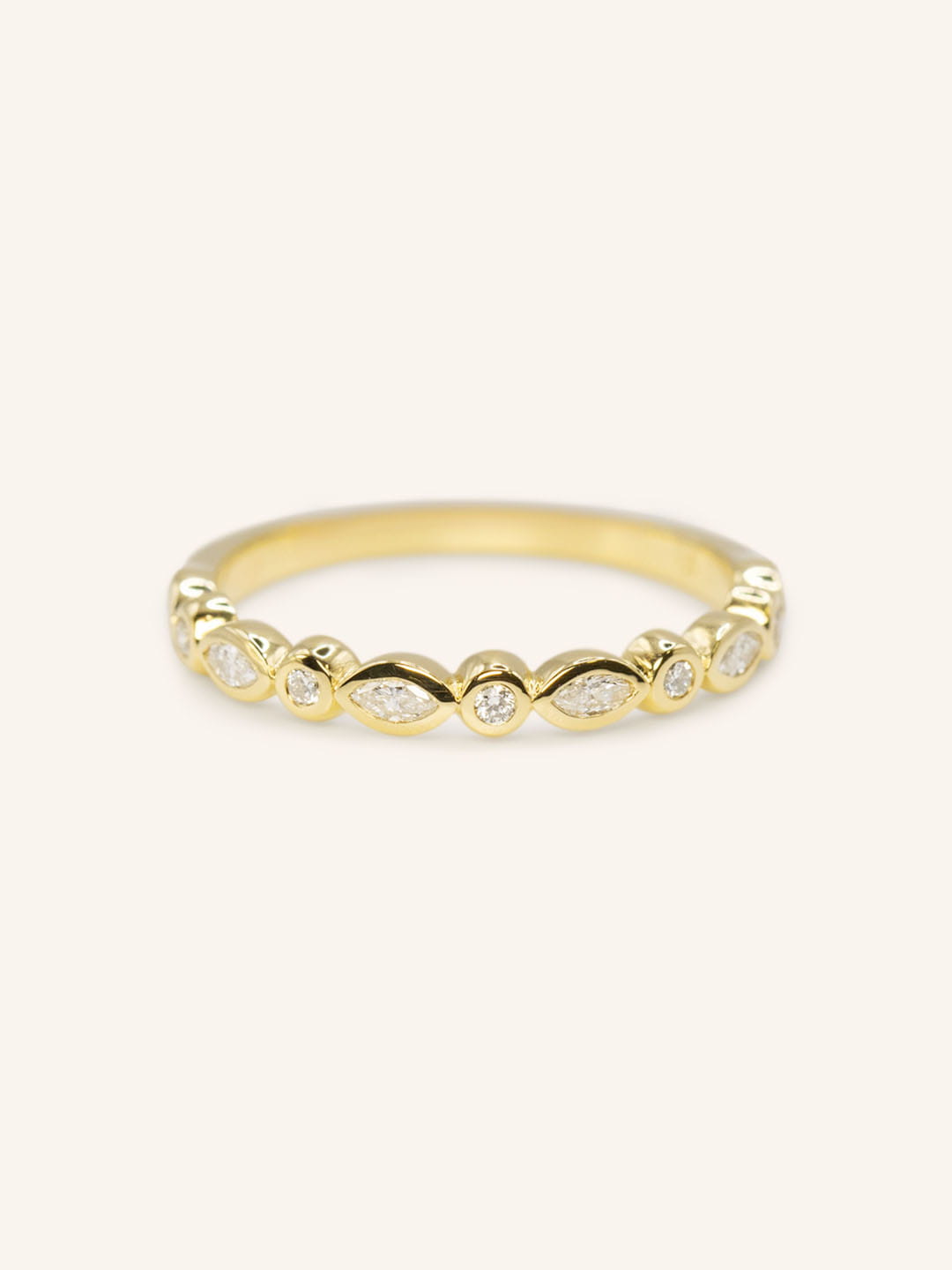 The Cedar Glen Diamond Anniversary Band is a timeless symbol of love, featuring bezel-set diamonds in a half-eternity design crafted from 14k gold. The bezel setting not only enhances the diamonds’ brilliance but also provides added security, making this band perfect for everyday wear. Whether worn alone or paired with an engagement ring, this elegant band commemorates your most cherished milestones and the love that endures.