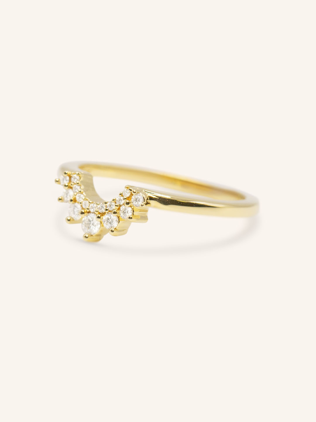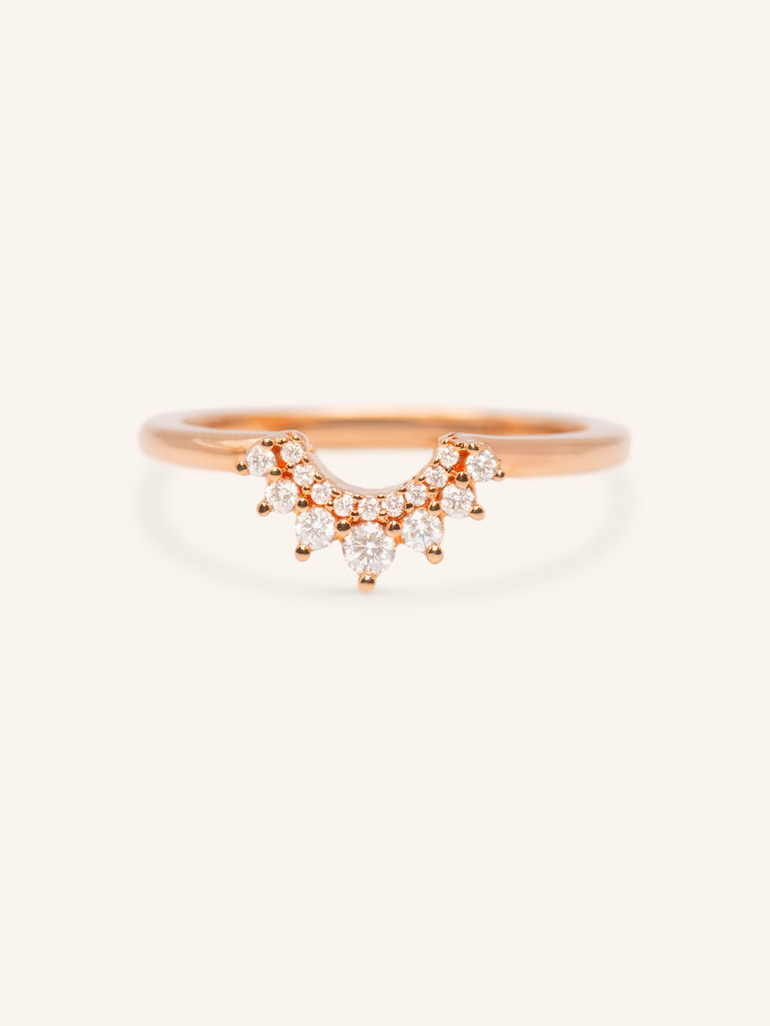 This exquisite curved diamond wedding band features a double row of sparkling diamonds. Adding this band to your wedding set will enhance its beauty and create a unique look. Its sophisticated and elegant design is perfect for any bride looking for a touch of luxury and style.
