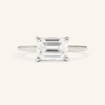 Elevate your proposal to a new level of sophistication with this timeless East West emerald step cut Diamond solitaire engagement ring. Delivering classic elegance with a modern edge, its minimal design will mesmerize you with its superior quality and lustrous finish, making it a beautiful choice that will always remain in style.