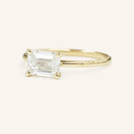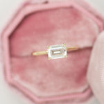 East West Emerald Step Cut Diamond Solitaire Engagement Ring
