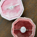 All of our engagement rings feature natural, lab-grown diamonds, and/or moissanites. They are ethically sourced and hand-selected for their quality and brilliance. Each product page specifies the stone type.