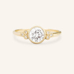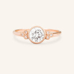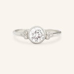 The Eaton Round Diamond Engagement Ring is a stunning piece that combines classic elegance with a vintage-inspired design. Featuring a brilliant round diamond as the centerpiece, this ring is beautifully accented with delicate milgrain detailing and smaller diamonds on each side, adding a touch of timeless charm.
