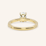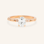 Featuring an oval lab-grown diamond, available in 7x5 mm or 8x6 mm sizes.
