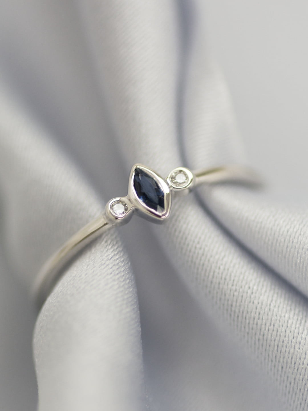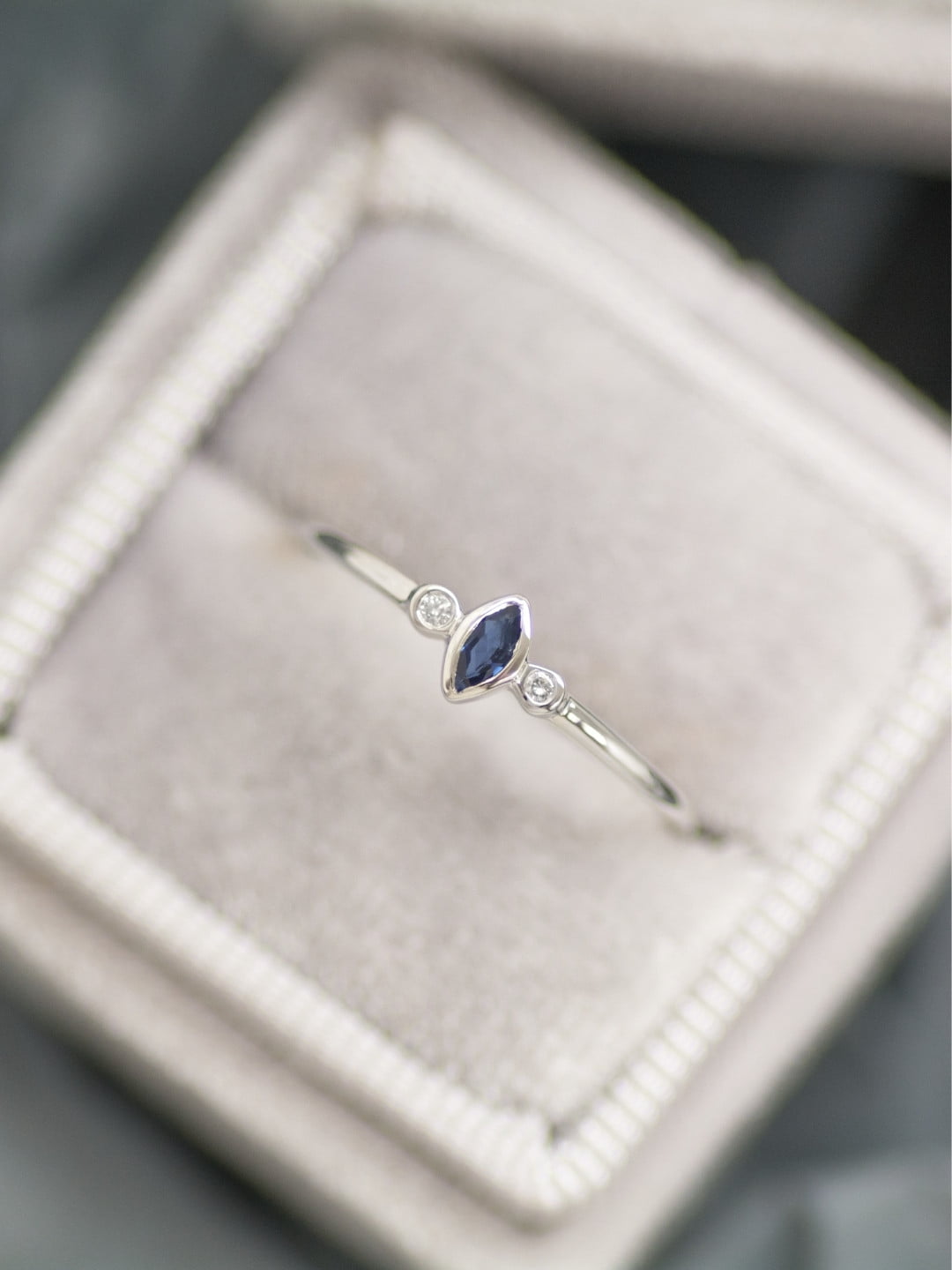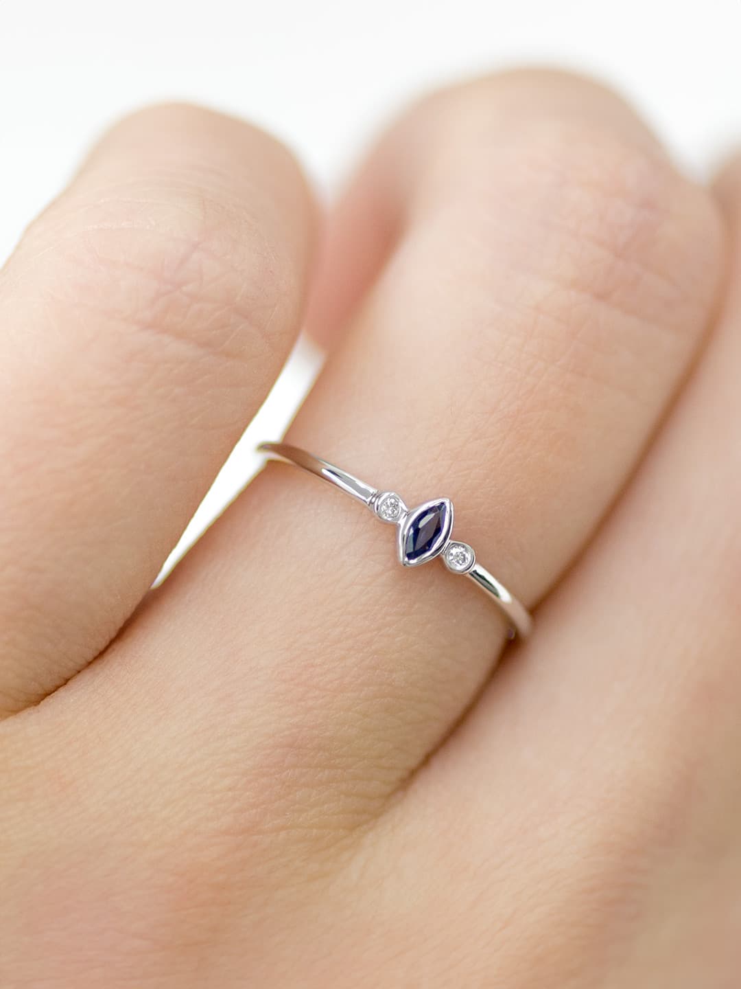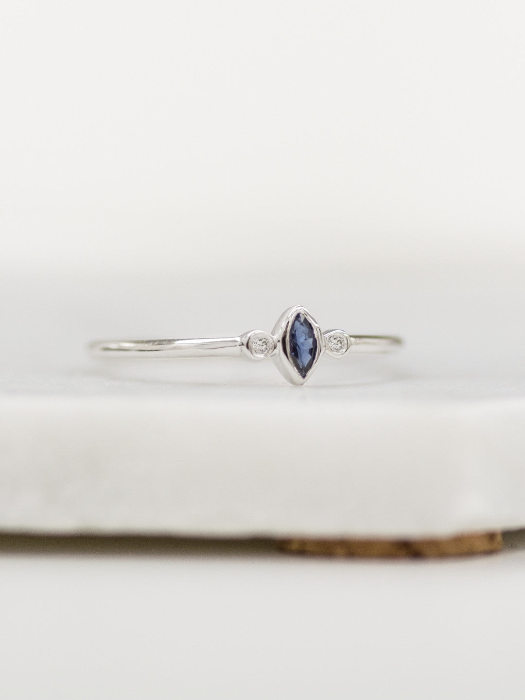 A transition of life. The season of fall is perfectly encapsulated in this marquise diamond ring. With your choice of gemstone, this dainty and minimalist ring is stunning to wear every day - alone or stacked with your other pieces.