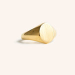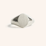 Add a personal touch to your style with our Oval Signet Ring. Its elegant, brushed finish gives a sophisticated look while the oval shape adds a modern twist. Plus, it can be engraved for a unique and meaningful touch.