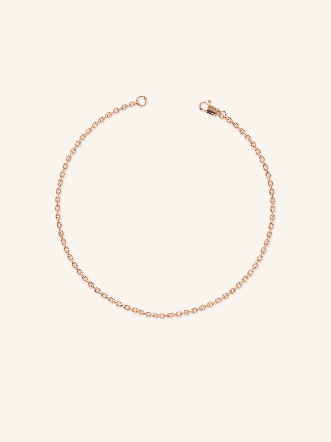 Solid 14k gold 1.40 mm 7" length cable chain (available in yellow, white, or rose gold).