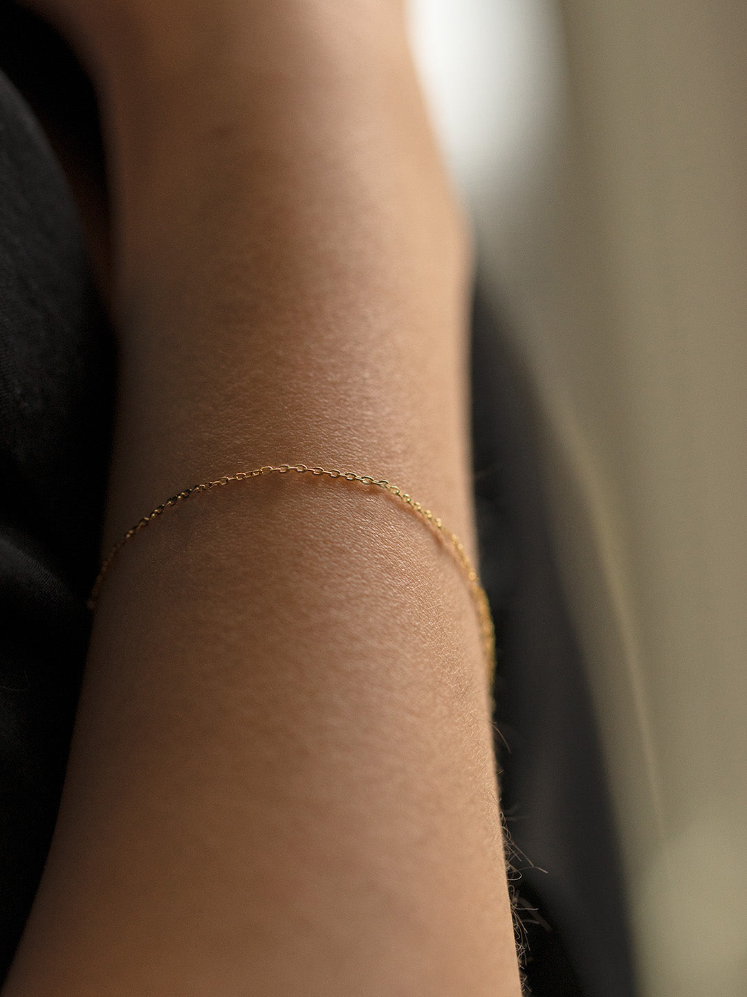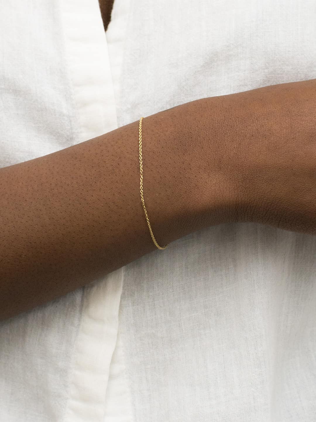 A dainty cable chain bracelet is a delicate and simple piece of jewelry that is perfect for both casual and formal wear - a classic accessory for those who appreciate minimal elegance. This delicate bracelet features a slender cable chain that drapes gracefully around your wrist, adding a touch of understated glamour to any outfit.