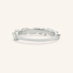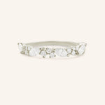 The Kamaria Diamond Anniversary Band features a graceful mix of marquise and round diamonds, arranged to create a shimmering, elegant profile. Its distinctive design adds subtle sparkle and visual interest, making it a refined addition to any ring stack or a meaningful standalone piece.