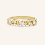 The Kyrie Band captures the romance of nature with its delicate, floral-inspired design. Each diamond is thoughtfully set to resemble blooming motifs, creating a graceful and timeless piece perfect for celebrating life’s special moments.