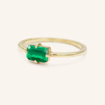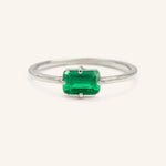 The Lady's Mantle Emerald Cut Ring showcases a rich, vibrant center stone with elegant step-cut facets that catch the light beautifully. Designed to sit low on the finger, its minimalist silhouette offers both comfort and sophistication. A refined piece perfect for everyday wear or adding a touch of color to special occasions.