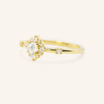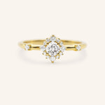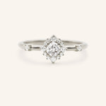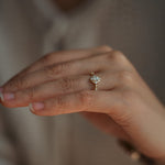 The Lennox Diamond Halo-Style Ring exudes timeless elegance with its stunning center diamond, surrounded by a radiant halo of smaller diamonds. Crafted in 14k gold, this ring's halo design enhances the brilliance of the center stone, creating a captivating sparkle from every angle. Perfect for those seeking a blend of classic beauty and modern sophistication, the Lennox ring is an exquisite choice for engagements or special occasions.