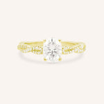 Featuring an oval faceted lab-grown diamond, available in 7x5mm, 8x6mm, or 9x7mm size. *Sizes are approximate and measurements are subject to change/alter to fit. The center stone will come graded with a certified report.