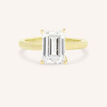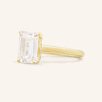 Featuring a emerald cut lab-grown diamond, available in 7x5 mm, 8x6 mm, or 9x7 mm sizes. Sizes are approximate and measurements are subject to change/alter to fit.The center stone will come graded with an certified report.
