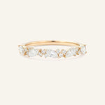 This stunning ring features a unique cluster design that adds a modern twist to the classic wedding band. Stackable for a versatile look, it's the perfect symbol of everlasting love.