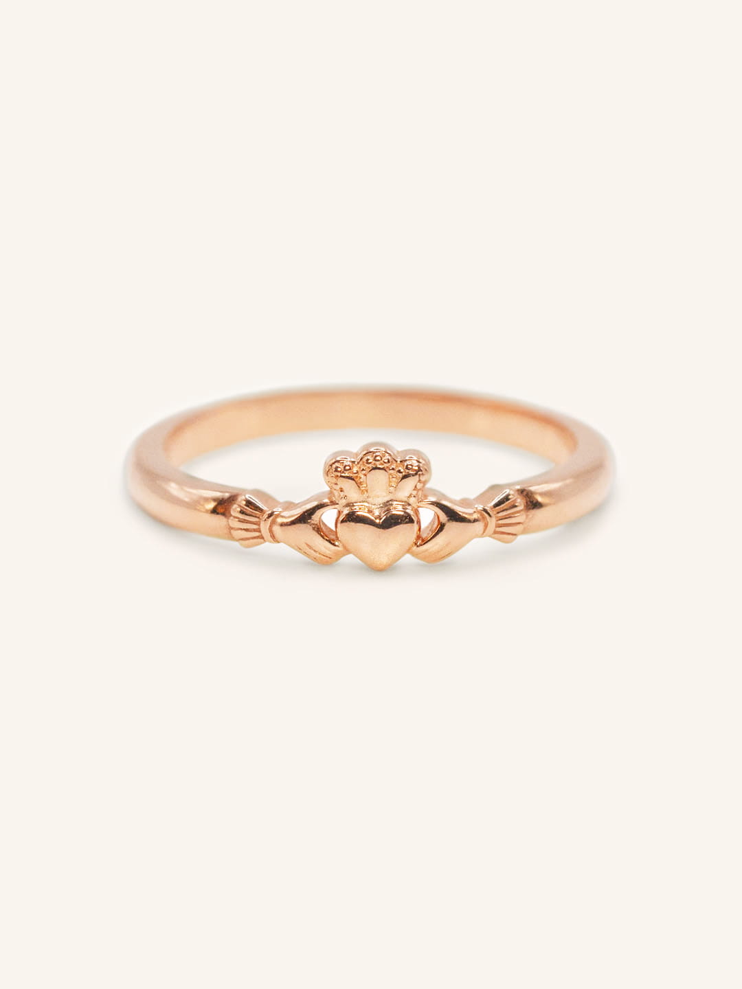 Our petite Claddagh Ring captures the essence of love, loyalty, and friendship in a charming, delicate design. Crafted with care, its tiny heart, crown, and hands create a beautifully balanced piece that’s perfect for everyday wear. Celebrate meaningful connections with this adorable symbol of enduring bonds—add it to your collection today.