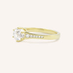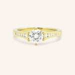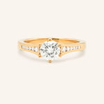 The Lucille Round Diamond Engagement Ring showcases a stunning round center diamond accented by channel-set side stones. This graceful design offers a touch of brilliance and elegance, creating a meaningful symbol of everlasting love.