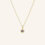 The Marigold Necklace features a beautiful hexagon shape six-prong setting with a single sparkling gemstone and delicate hand beading around the edge. This fun geometric necklace adds a unique touch to your jewelry collection, making it a versatile and eye-catching piece. Elevate your style with the Marigold Necklace, a perfect blend of modern design and timeless elegance.