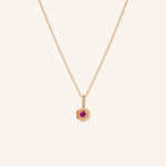 The Marigold Necklace features a beautiful hexagon shape six-prong setting with a single sparkling gemstone and delicate hand beading around the edge. This fun geometric necklace adds a unique touch to your jewelry collection, making it a versatile and eye-catching piece. Elevate your style with the Marigold Necklace, a perfect blend of modern design and timeless elegance.