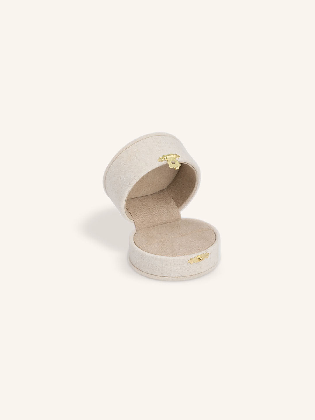 The Marina Linen Single Ring Box offers a sleek and elegant presentation, with a soft matte finish. The exterior is crafted from high-quality linen, while the interior features plush suede to cradle your ring in luxury. Perfect for proposals, weddings, or storage, this box adds a touch of sophistication to your most cherished piece.