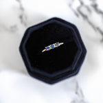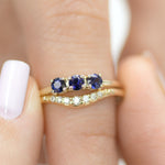 A mariposa is meant to symbolize the beautiful transformation of life. Allow the Mariposa White Sapphire Lily Ring to embody this stunning ring with 3 minimal blue sapphires. It's a beautiful representation of life and the change everyone hopes for.