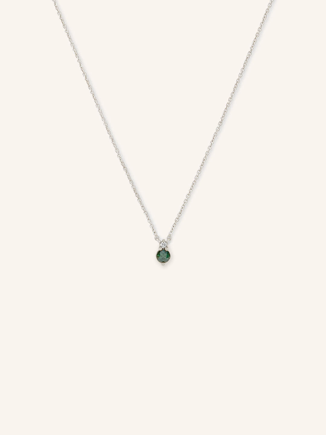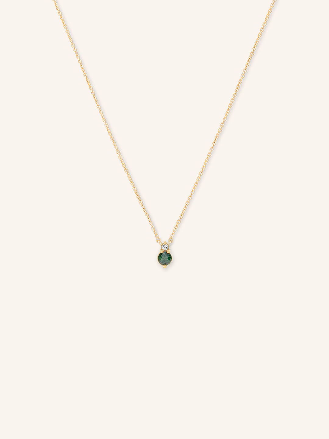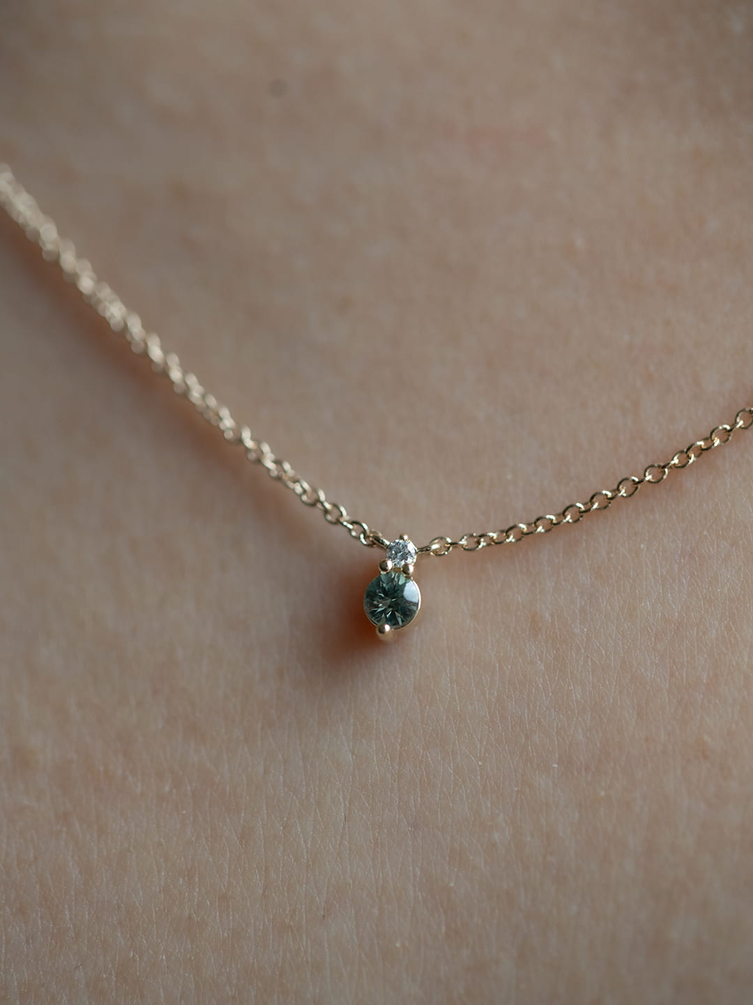This elegant piece features a stunning green sapphire alongside a diamond accent, making it a perfect choice for adding a touch of sophistication to any outfit. Crafted with quality and style in mind, this necklace is sure to become a staple in your collection.