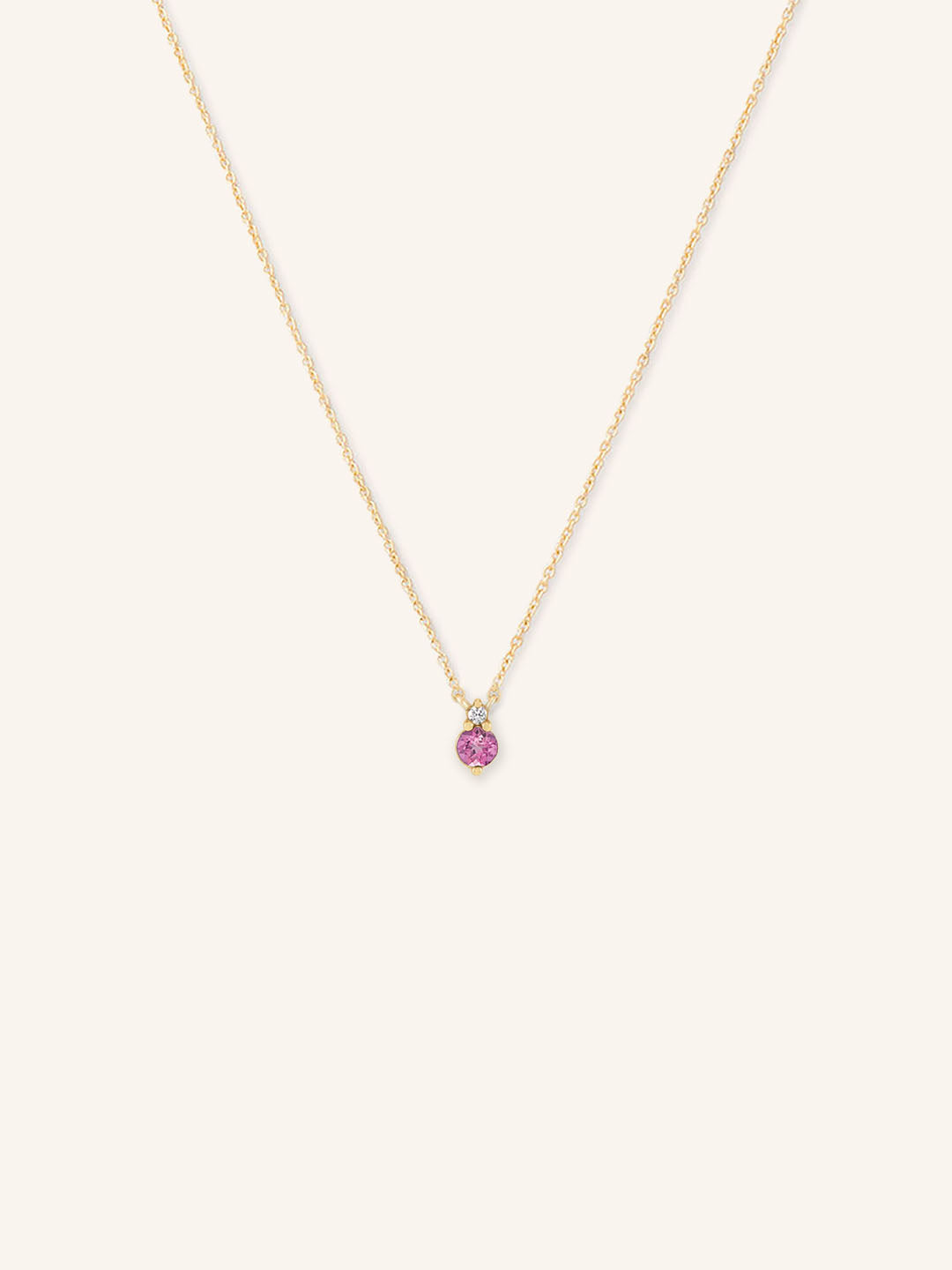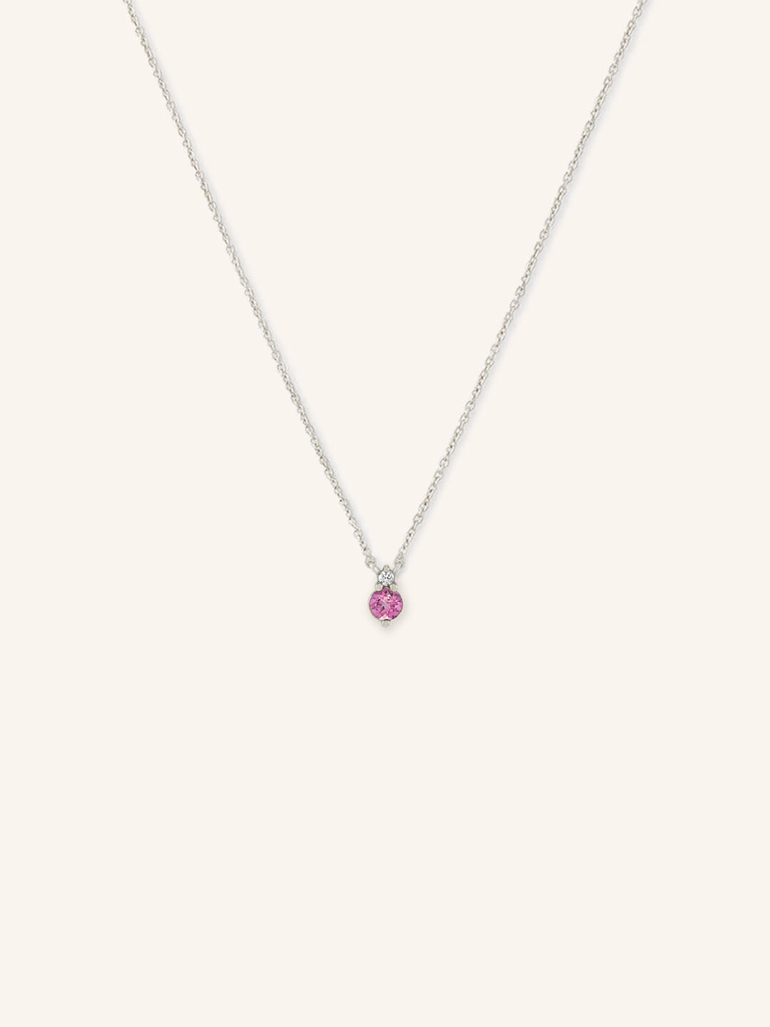 This elegant piece features a stunning pink sapphire alongside a diamond accent, making it a perfect choice for adding a touch of sophistication to any outfit. Crafted with quality and style in mind, this necklace is sure to become a staple in your collection.