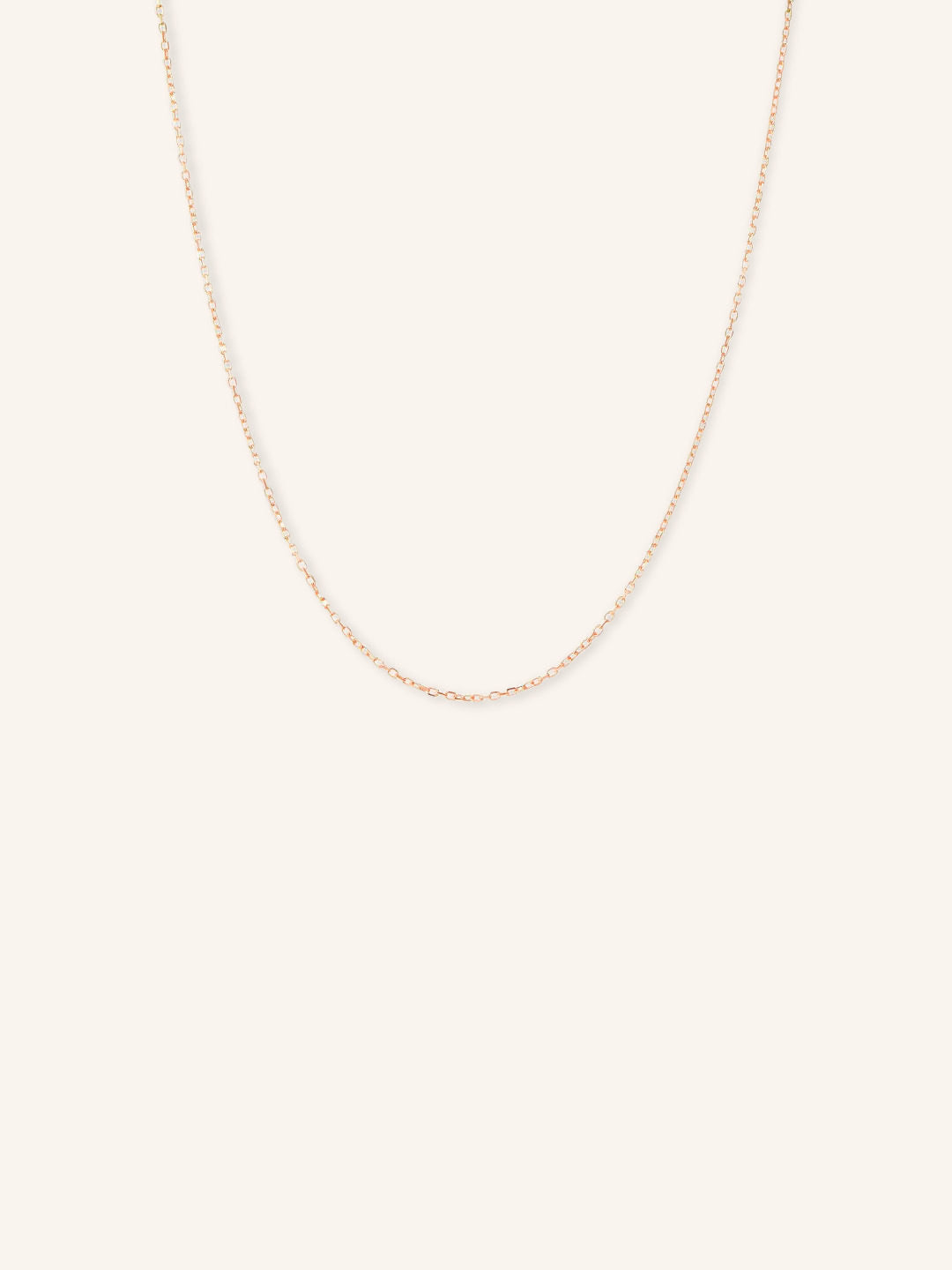 Solid 14k gold 1.30mm cable chain with a choice of 16", 18", 20", or 22" length (available in yellow, white, or rose).
