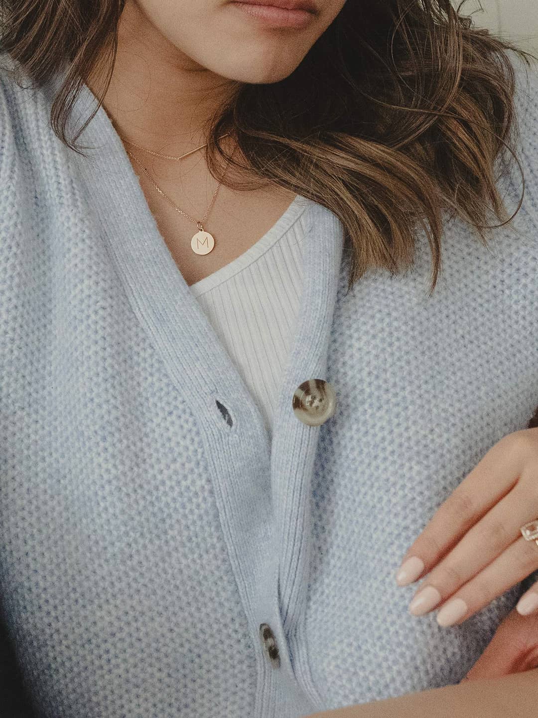 Get ready to take out your fall blazers, our favorite being a navy color, Our Navy Blazer Tag will match any fall outfit, you can have it as a plain tag or personalize it with your initials to really make it your own. We also love this stacked with other necklaces!