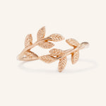 Uniquely organic and intricately detailed, our Olive Leaf ring is crafted in solid 14K gold and features an open wrap design that highlights olive leaves on each end, creating an eye-catching accessory.
